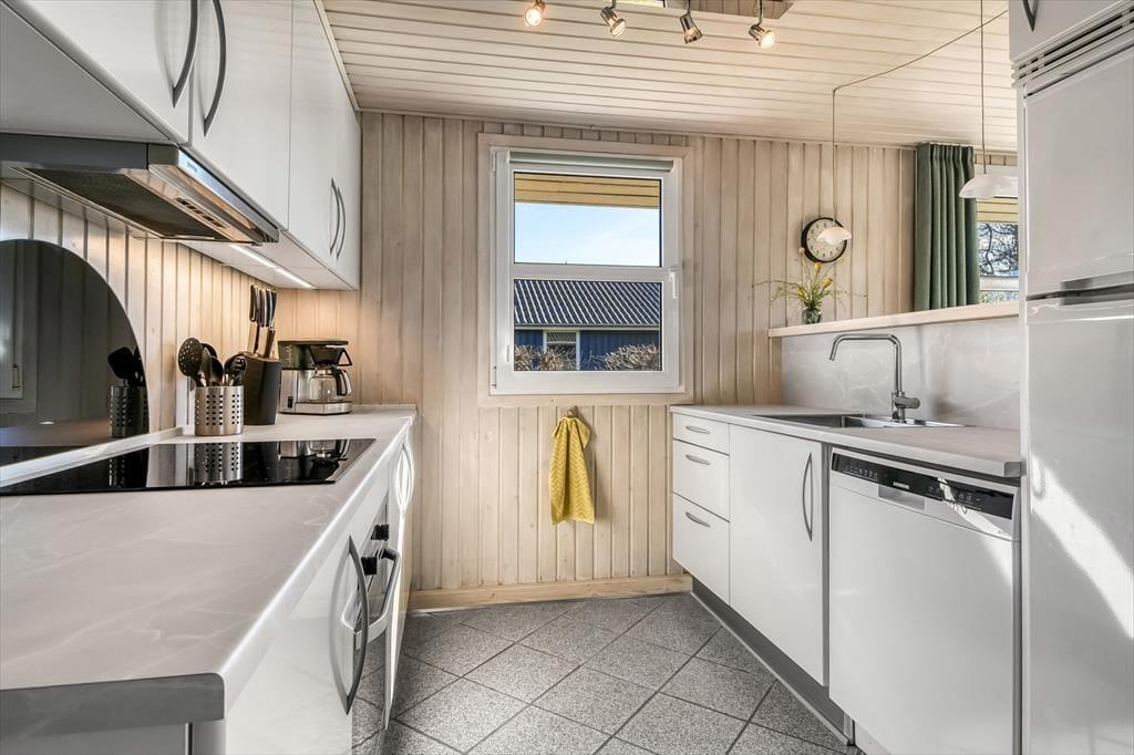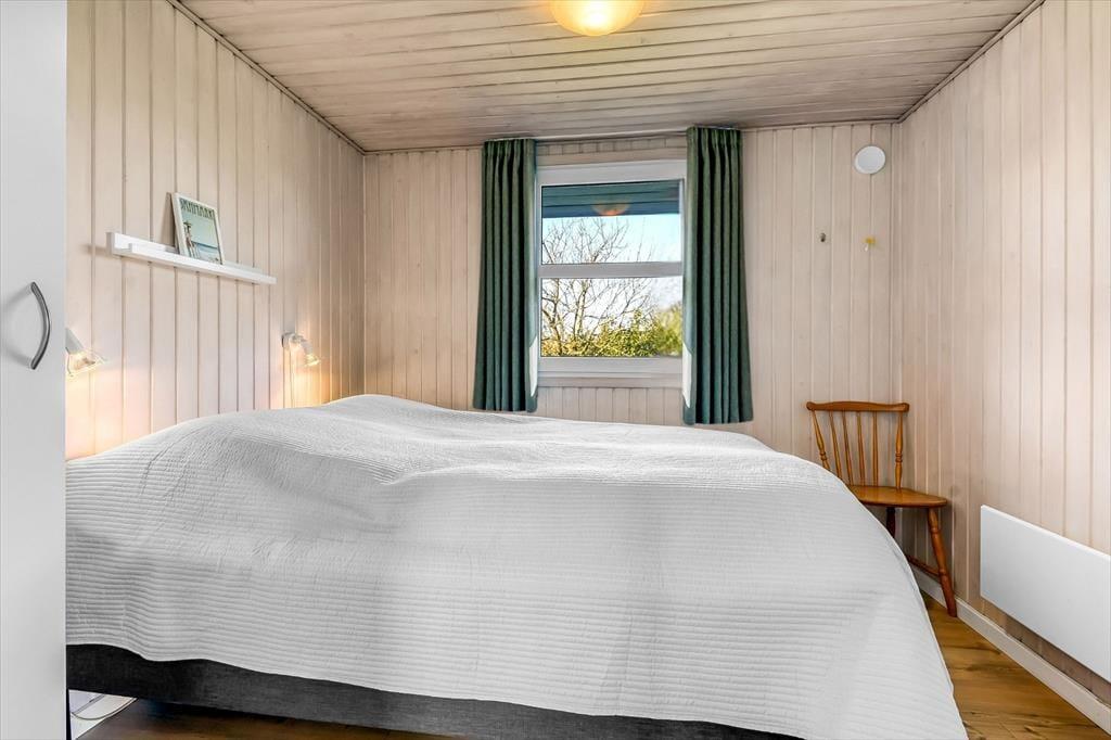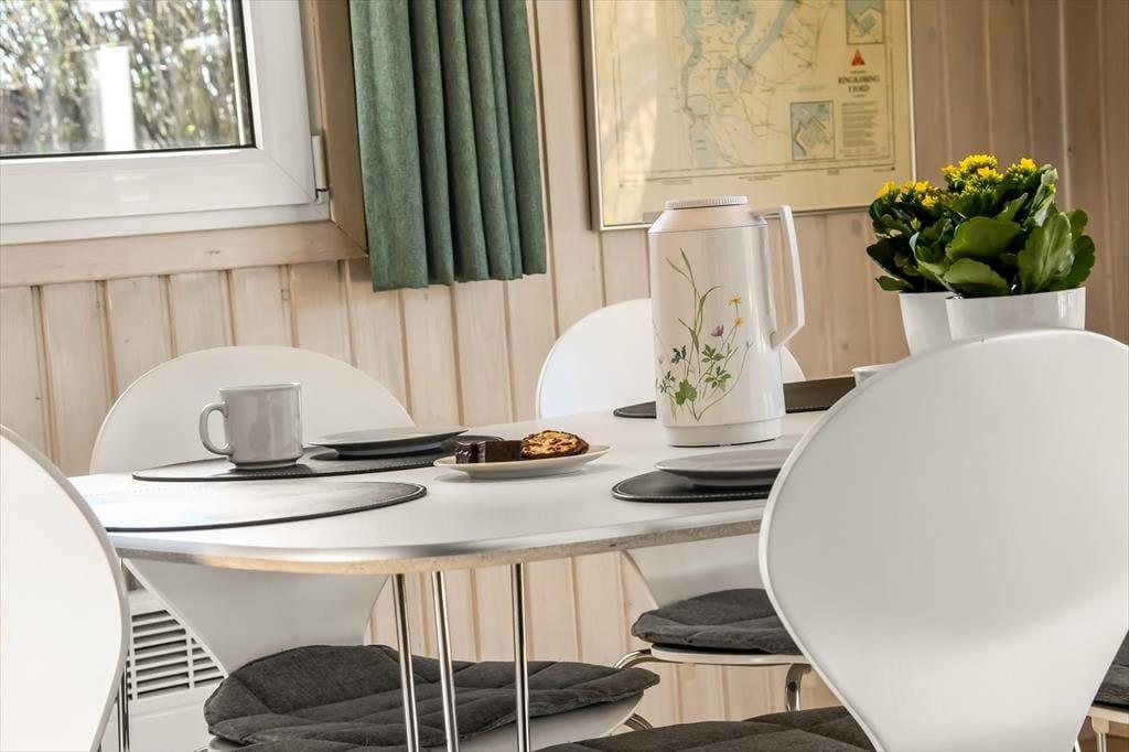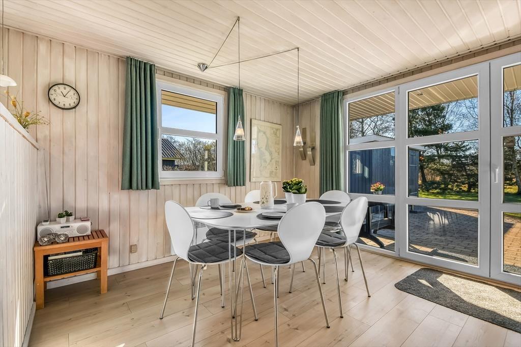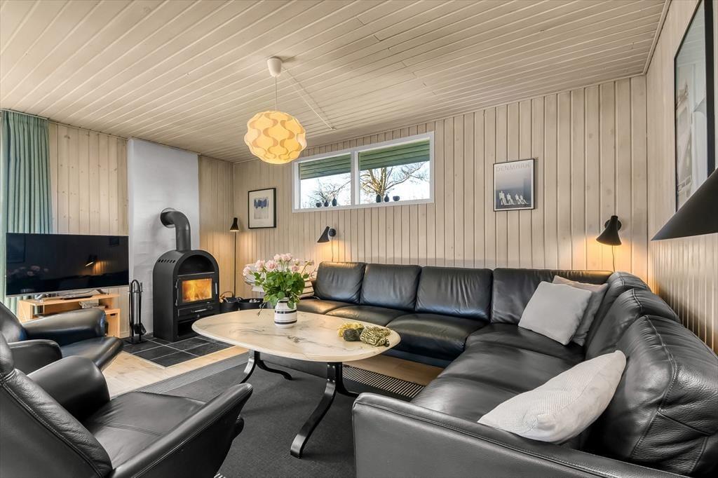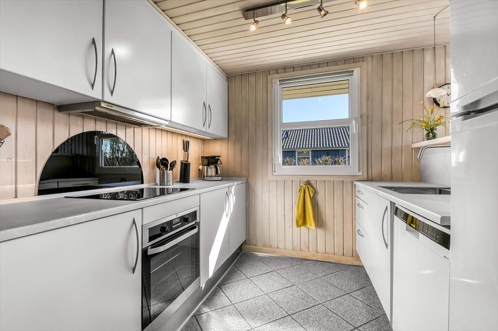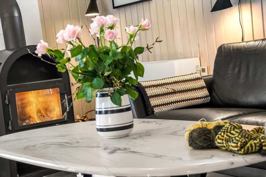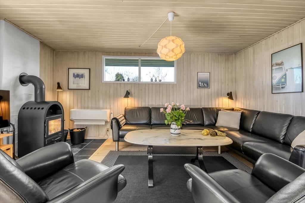 Ikke bare beliggenheden er værd at fremhæve, for selve huset er nemlig et særdeles hyggeligt eksemplar med en praktisk planløsning og en rar atmosfære. På ægte sommerhusmanér er der lyse trælister på væggene, og gennem vinduerne kan I se lige ud på den grønne have, der omkranser ejendommen. I opholdsrummet er køkken og stue forenet, så her kommer alskens hyggelige ferieaktiviteter til at foregå, lige fra madlavning til gode måltider omkring spisebordet og sofaafslapning nær brændeovnen. Afslapningsstunderne kan alternativt foregå i badeværelsets sauna – eventuelt når I vender hjem efter at have windsurfet på fjorden. Og uanset hvad dagsprogrammet står på, kan I se frem til en god nats søvn på sommerhusets tre soveværelser.