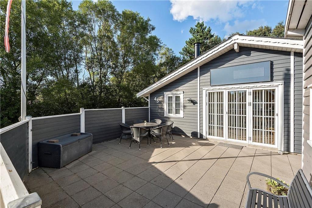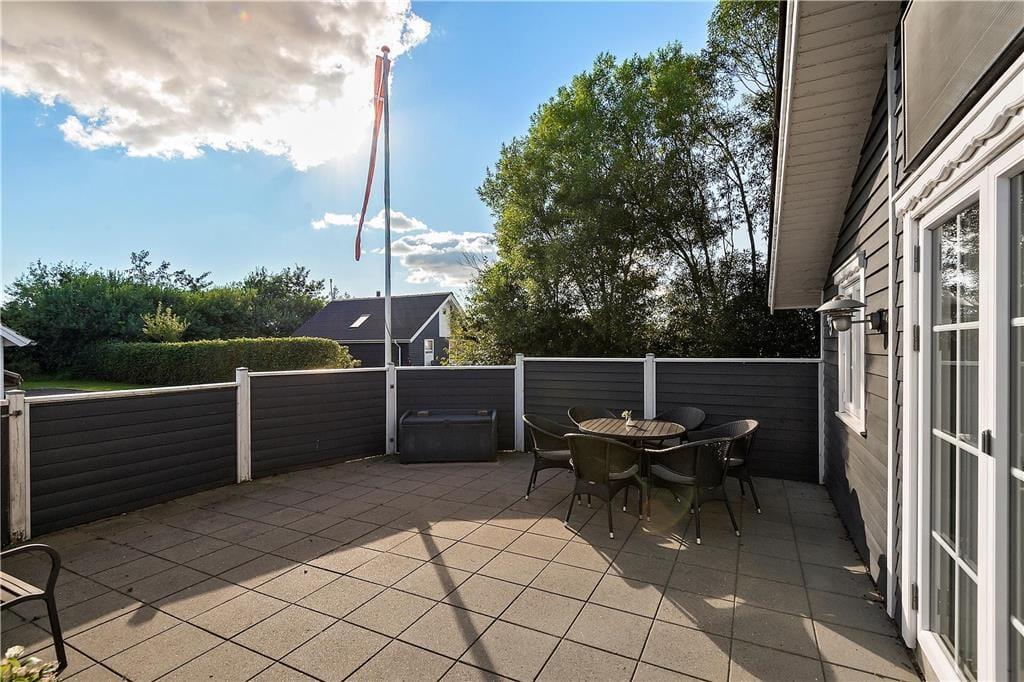 Ikke bare det sydvendte terrassemiljø, men også baghaven er indhegnet, og det giver både læ og privatliv, når I soler jer og slapper af i havemøblerne. Samtidig betyder det også, at I uden problemer kan slippe hunden løs, hvis I har sådan en eller flere med på ferie.