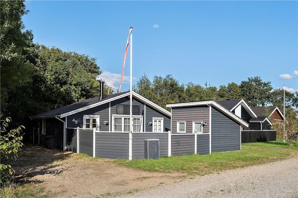 Der er hyggeligt både inde og ude i dette fine træsommerhus, der ligger på en lille, lukket vej i Bork Hytteby.