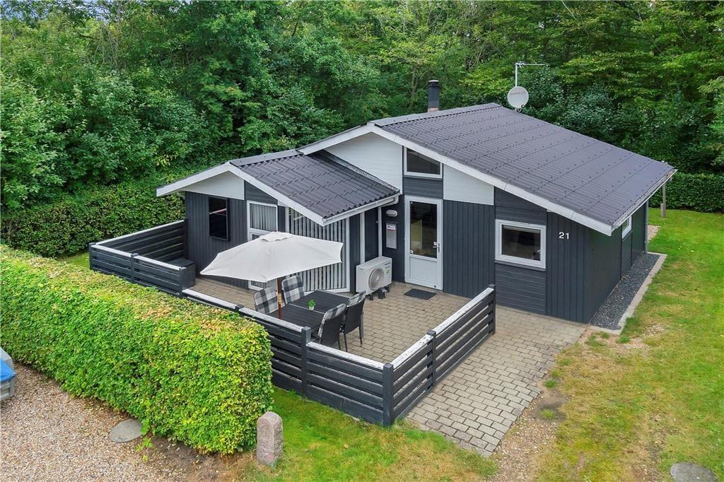 Både foran og bagved sommerhuset kan I nyde livet på de velanlagte terrasser. Er der børn med på ferie, kan de gynge, lege i sandkasse eller spille bold på græsplænen, mens de voksne læner sig tilbage i havestolene og mærker feriefreden sænke sig.