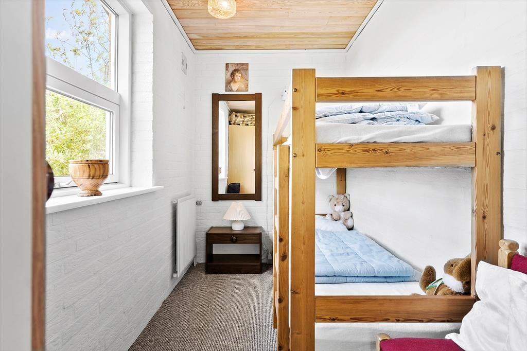 Huset er velindrettet med b.la. et stort køkken med alt, hvad der skal bruges, og et dejligt stort spisebord. Køkkenet ligger i åben forbindelse med stuen, der har både sofa, lænestole og fjernsyn. De 7 sovepladser er fordelt på 4 soveværelser, med hhv. en dobbeltseng, en enkeltseng, to enkeltsenge og en køjeseng. Herudover et rummeligt badeværelse. I huset er der også både vaskemaskine og tørretumbler. Alt i alt et dejligt feriehus med charme og sjæl.