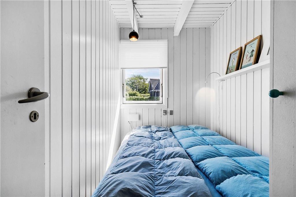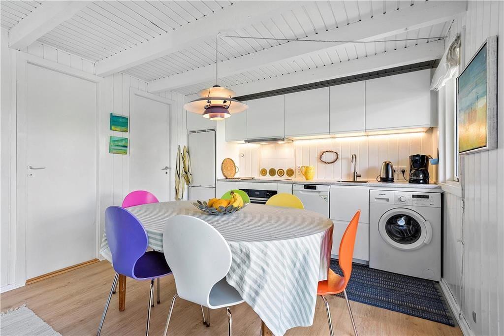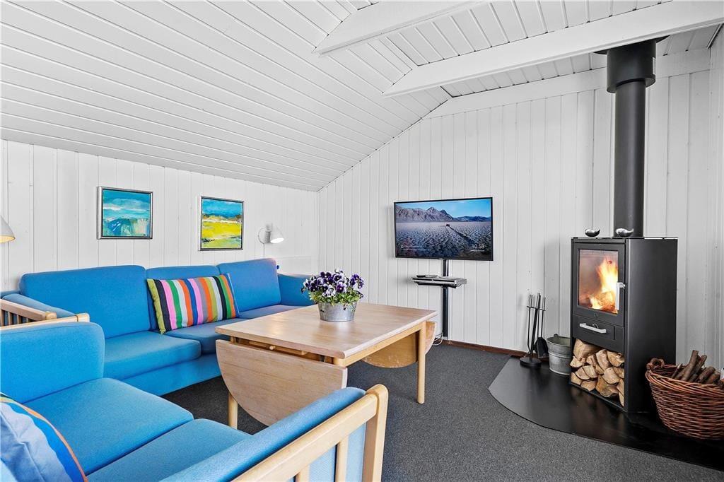 Ferien bliver bogstaveligt talt tilbragt lige ved Ringkøbing Fjord, når valget falder på dette enkle og hyggelige træsommerhus. Det ligger nemlig i første parket og blot 50 meter fra surfstranden i Bork Havn, og når I sidder på altanen, kan I nyde udsigten over fjorden og de smukke kystomgivelser.