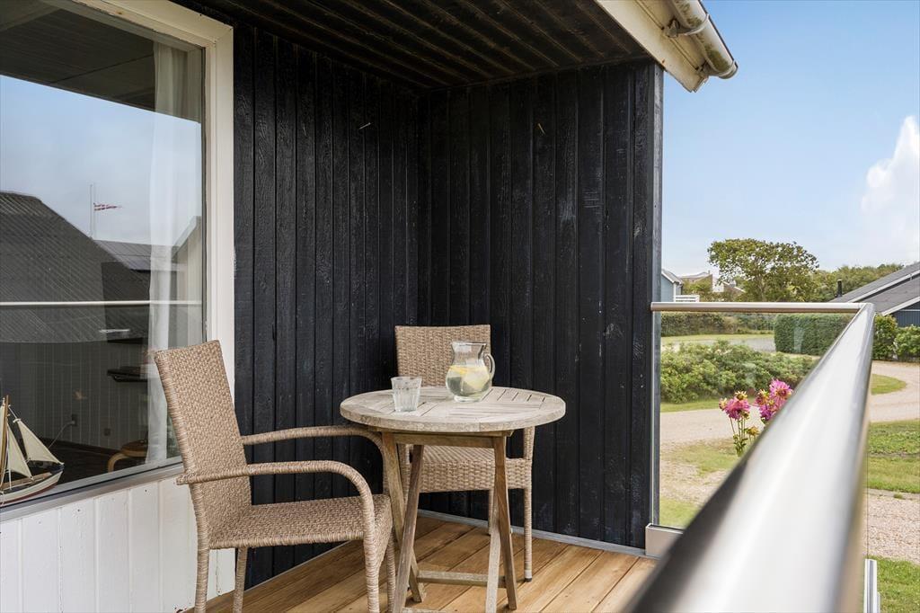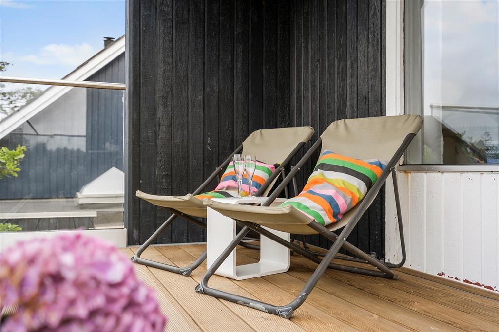 Fra førstesalens nye smukke glasaltan på 12 kvadratmeter, kan I sidde og følge med i, hvordan wind- og kitesurfere boltrer sig ude på fjorden – og måske får I selv lyst til at trække i våddragten og smutte ned med surfbrættet. Har I mere lyst til en tilbagelænet stund i en havestol, kan I blive siddende på altanen eller alternativt flytte ned på den vestvendte terrasse, der ligger lige ud til en grøn græsplæne.