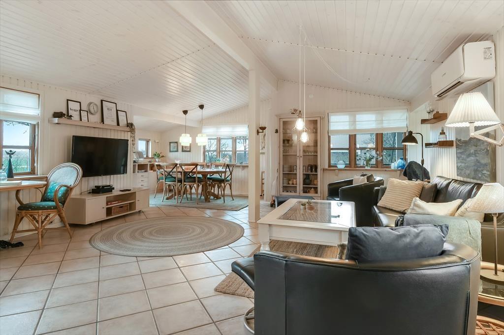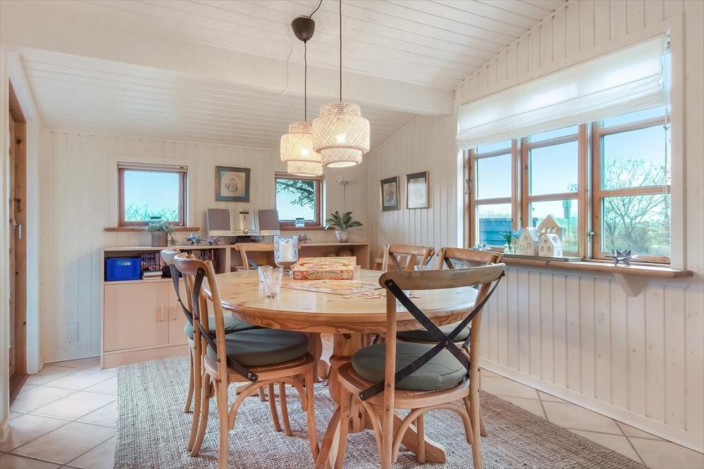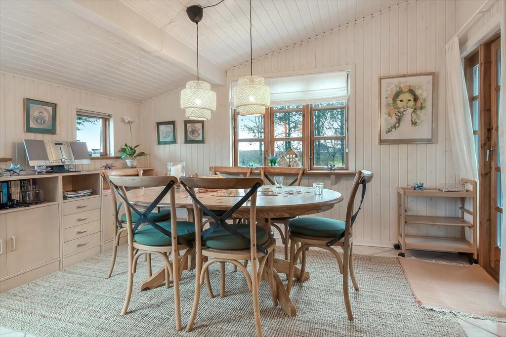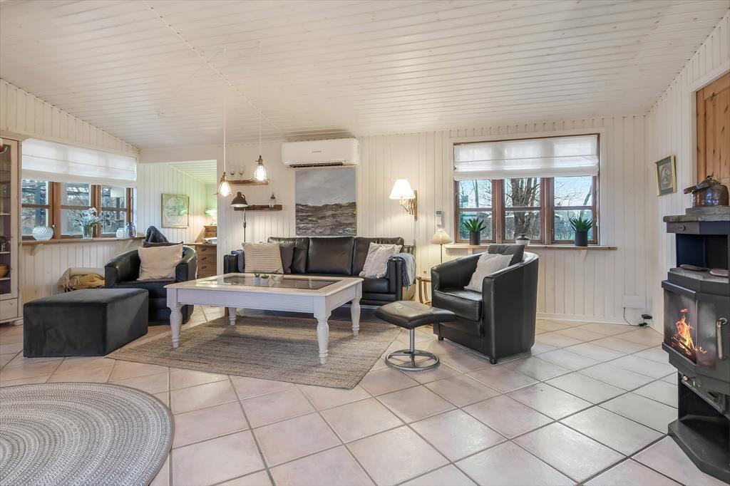 Udover at ligge smukt og fredeligt placeret på en lukket vej er der mange andre kvaliteter ved huset. Det er nemlig både rummeligt og stemningsfuldt, og det hyggeskabende møblement bidrager til den gode atmosfære. I den store stue er der gennemstrømmende lysindfald, brændeovn samt TV med både danske og tyske kanaler, og på velfungerende vis er der åben forbindelse til en veludstyret køkkenafdeling. Et pænt badeværelse og et bryggers med vaskemaskine er også del af planløsningen, og når det er ved at være sengetid, kan I se frem til en god nats søvn på de to soveværelser. Er der ikke sengepladser nok på værelserne, kan I rede op i annekset, som I kan gå tørskoet hen til via terrassen.