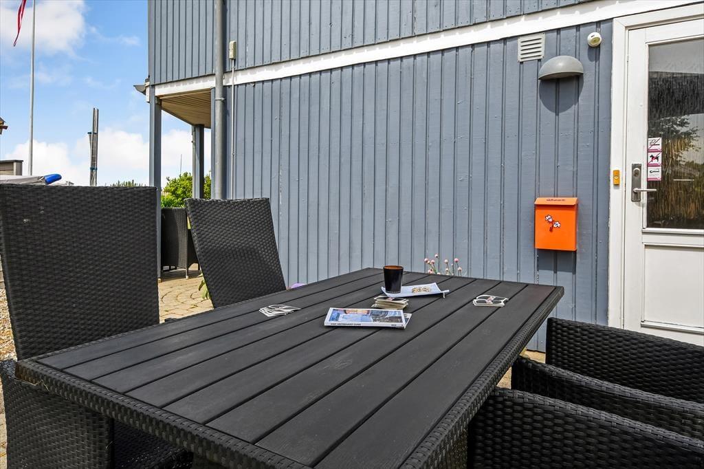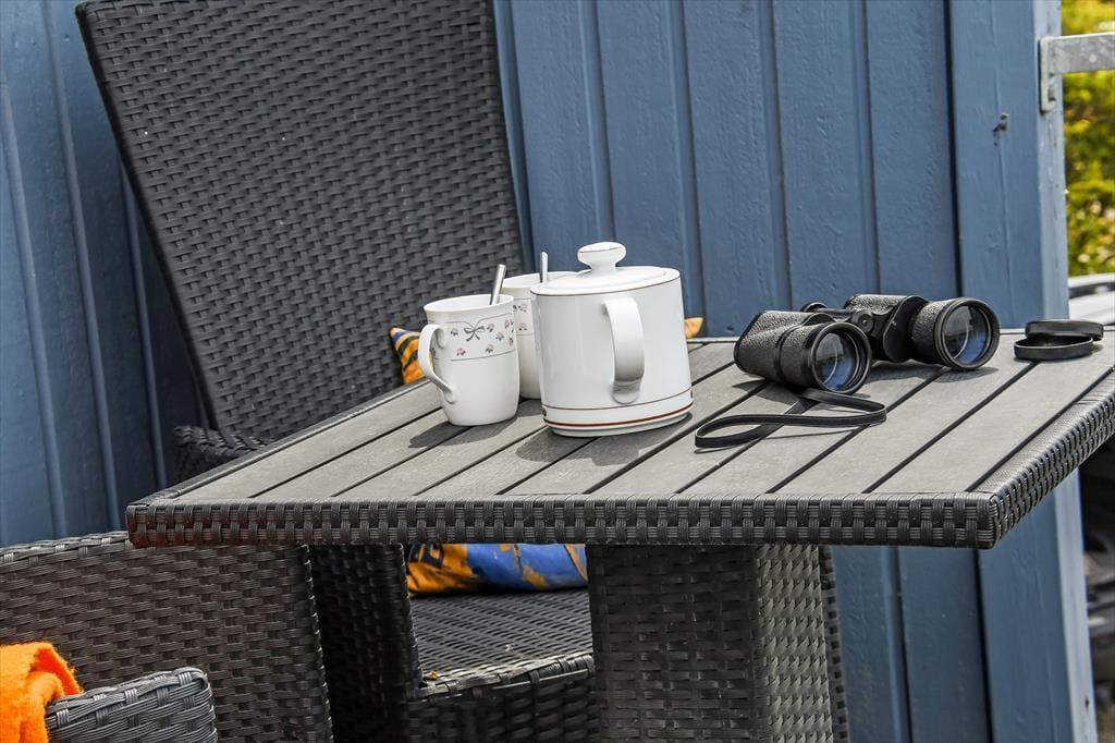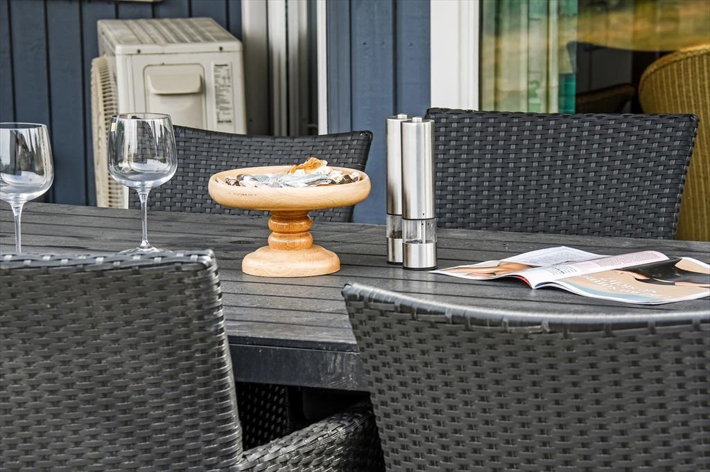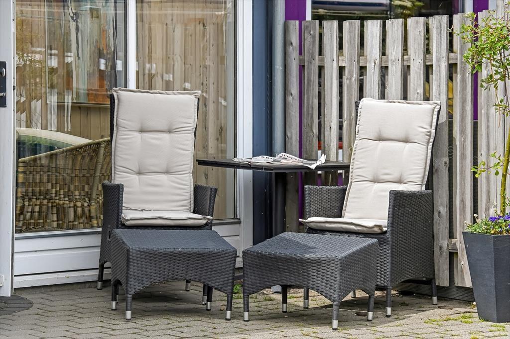Udsigten over Ringkøbing Fjord er allermest imponerende fra førstesalens altan, for her kan I skue ud over surfstranden og det åbne vand – og mod nord kan I kigge over mod de røde bygninger, der ligger ved byens havn få hundrede meter væk. Vil I nyde solskinnet først på dagen, kan I rykke driverlivet om på sommerhusets østside, og senere på dagen er det skønt at sidde på den delvist overdækkede terrasse i den vestvendte have.