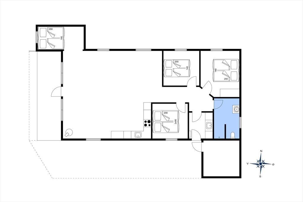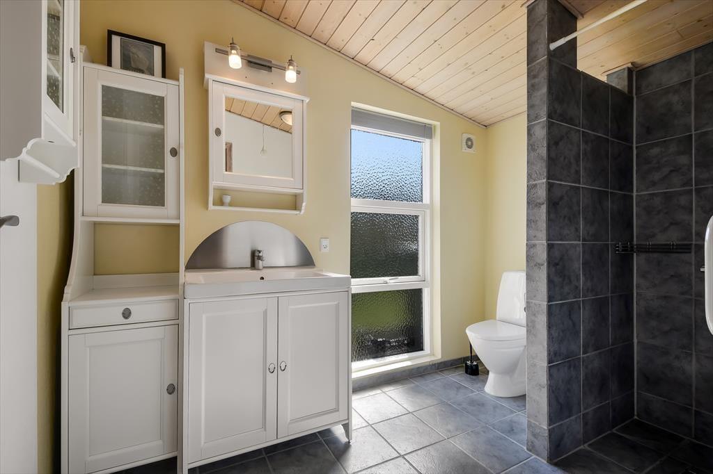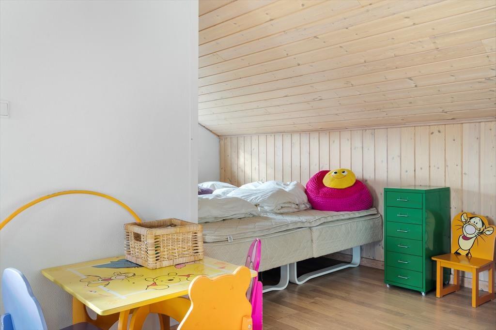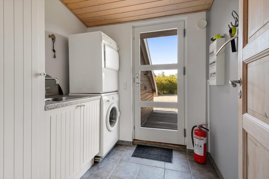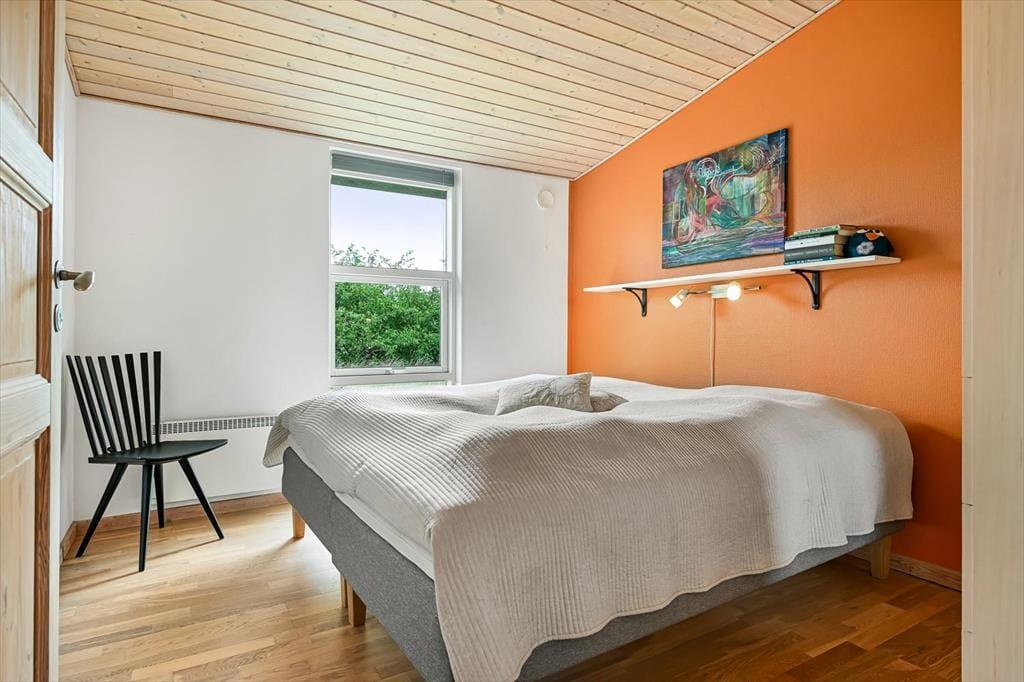 Dagslyset strømmer ind i sommerhusets flot indrettede rum – ikke mindst i den store opholdsafdeling, som er udstyret med panoramavinduer. Både her og i de øvrige rum, der inkluderer tre soveværelser, et badeværelse og et bryggers med vaskesøjle, er det tydeligt at se, at der er lagt vægt på at skabe en både hyggelig og funktionel feriebolig: På badeværelset og i bryggerset er der gulvvarme, og alle soveværelser er indrettet med komfortable dobbeltsenge, og der er for øvrigt både barneseng, høj stol og legetøj til de mindste feriegæster. En alkove i stuen kan bruges som en ekstra topersoners sengeplads ved nattetid, og i løbet af dagen fungerer den som en dejlig legekrog til børnene. Stuens komfortable møbler, TV og brændeovn lægger op til tilbagelænet afslapning og ren nydelse, og takket være den åbne forbindelse til det veludstyrede køkken kan madlavningen også nemt blive et fælles hyggeprojekt.
