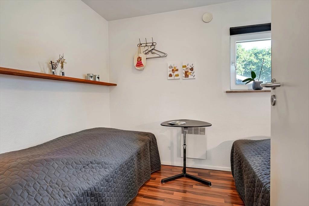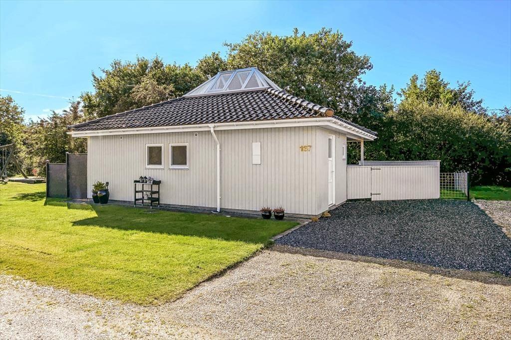 Det lille sommerhus ligger skønt placeret i bunden af Bork Hytteby på en lukket vej og lige ved siden af en legeplads. Der er en boldbane i nærheden, og de små stier fører jer trygt af sted på den korte tur til sommerhusområdets egen jollehavn ved Fahl Å. Området byder på to dejlige legepladser. Fahl Kro og Bork Vikingehavn ligger også i kort afstand, og hvis I vil ind til Bork Havns populære surfstrand og det hyggelige havnemiljø med butikker og spisesteder, er der blot et par kilometer. Nær bymidten finder I en lille, børnevenlig badestrand, og hos er der mulighed for at spille minigolf, leje gokarts og cykler, hvis I får lyst til en udflugt til fuglereservatet Tipperne eller til Skjern Enge, hvor I selv kan fragte jer over Skjern Å med trækfærger.