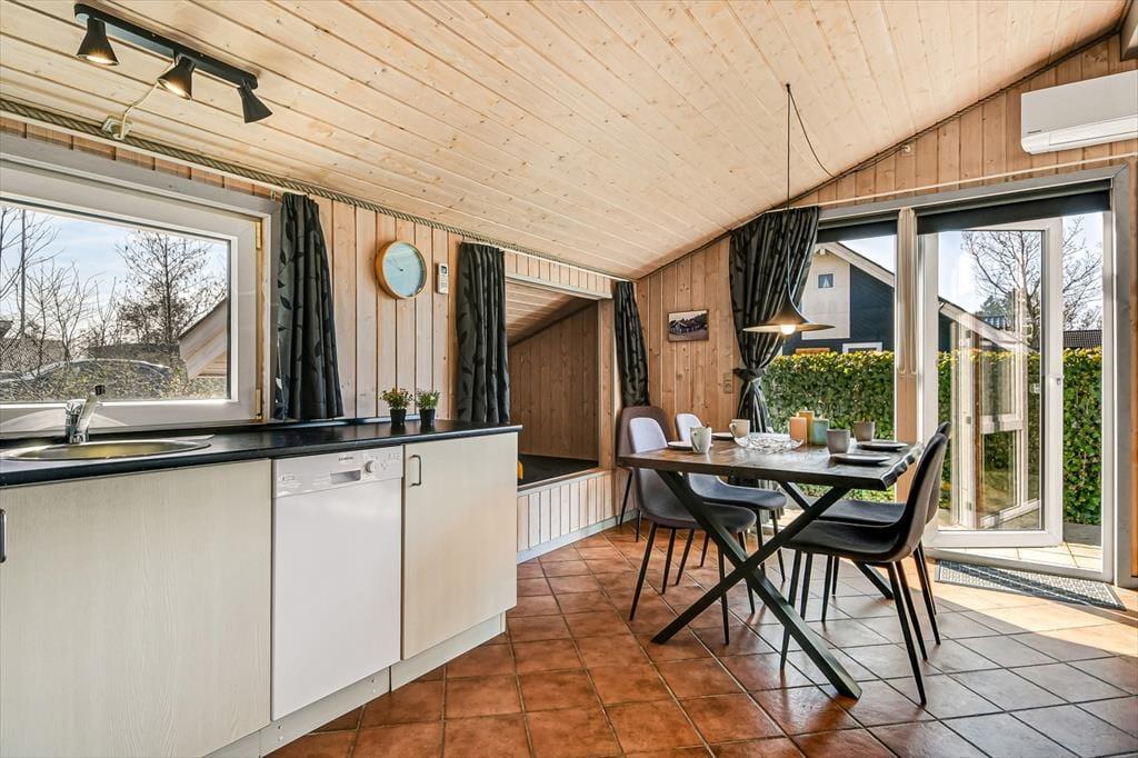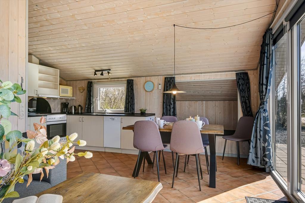 50 m2 lyder måske ikke af meget, men egentlig er der ikke behov for mere plads, når rammerne er så funktionelle og hyggelige. På badeværelset er der både bruser, gulvvarme og vaskemaskine, mens sommerhusets to soveværelser begge er indrettet med dobbeltseng. Har I brug for flere sengepladser, er der mulighed for at rede op i stuens alkove, som derudover kan bruges som hyggekrog i løbet af dagen, når I får lyst til en middagslur eller et behageligt sted at læse avisen. Stuen er desuden et dejligt, vinkelformet opholdsrum med åben køkkenafdeling, spisebord, sofahjørne og fladskærms-TV. Opholdsrummets gulvvarme sørger for, at I ikke får kolde tæer, og alt efter behovet kan varmepumpen både varme og køle.