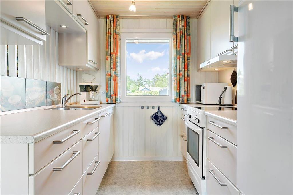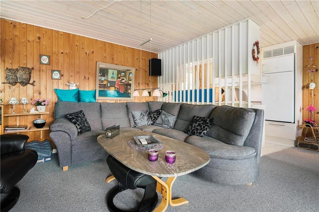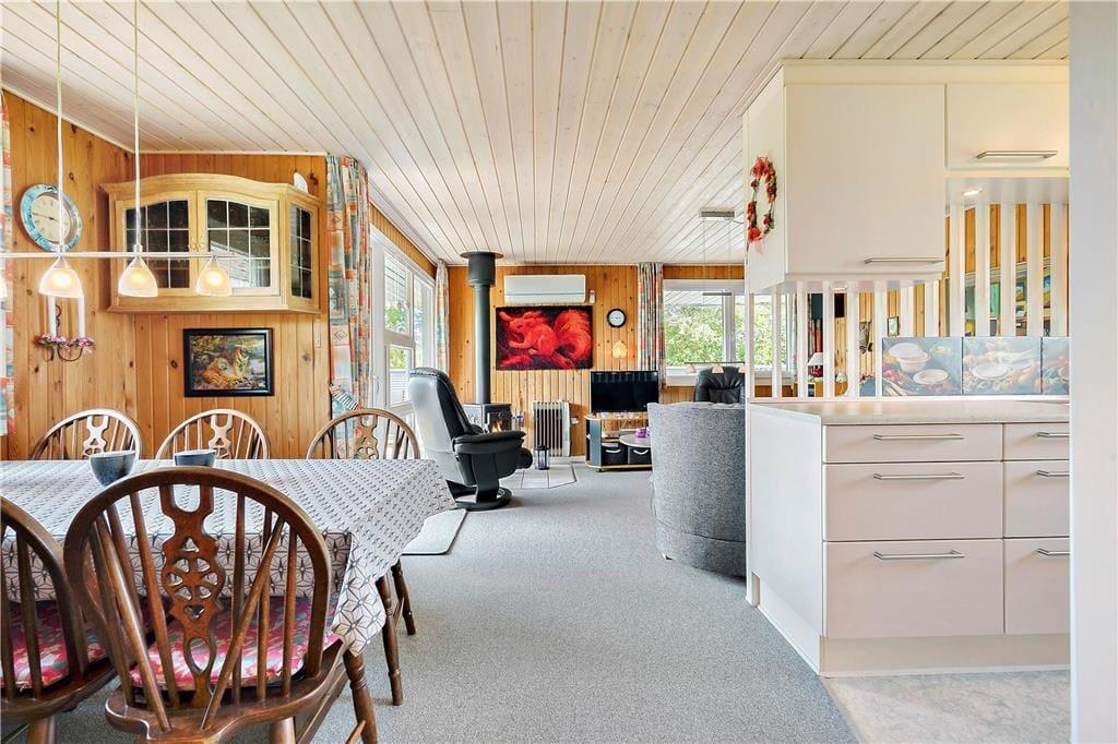 Der er tale om et klassisk træsommerhus fra 1975, som gennem årene er pænt vedligeholdt og opdateret – blandt andet med opvaskemaskine, trådløst internet, varmepumpe med køl og andre moderne bekvemmeligheder. Huset måler 60 m2, som blandt består af tre soveværelser med i alt fem sengepladser: På det ene sovegemak finder I en dobbeltseng og på de to andre henholdsvis en og to enkeltsenge. Et badeværelse hører også med til planløsningen, og i den ene ende af sommerhuset ligger køkken og stue i åben forbindelse. Det er et hyggeligt sted at tilbringe tiden sammen, og når ferieprogrammet for eksempel står på sofahygge med en god film på fladskærmen og ild i brændeovnen, føles hverdagen hurtigt meget langt væk.