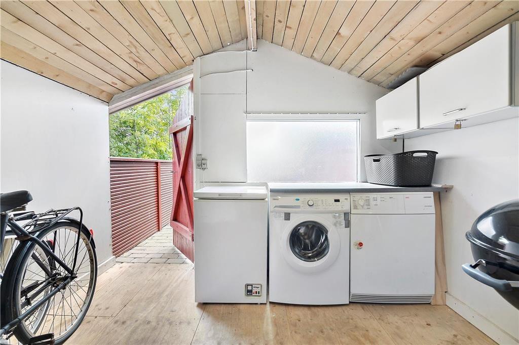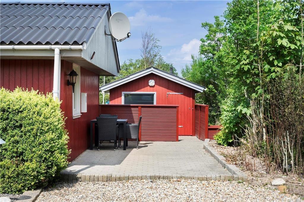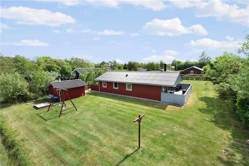 Sommerhusets terrasse er den helt rette opholdsplads, når I har lyst til en tilbagelænet stund i en god havestol. Et hegn rundt om terrassen understreger fornemmelsen af privatliv og kan også give lidt læ, hvis det skulle være nødvendigt. På græsplænen er der desuden godt med plads til at spille bold og boltre sig, og der er endda både gynger og sandkasse til de alleryngste legebørn.