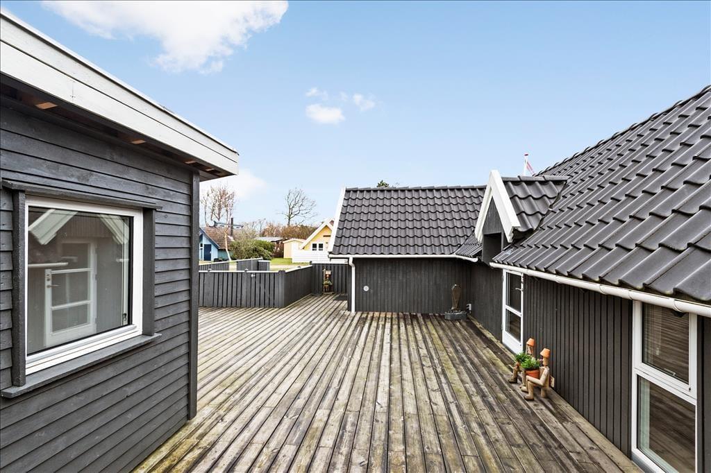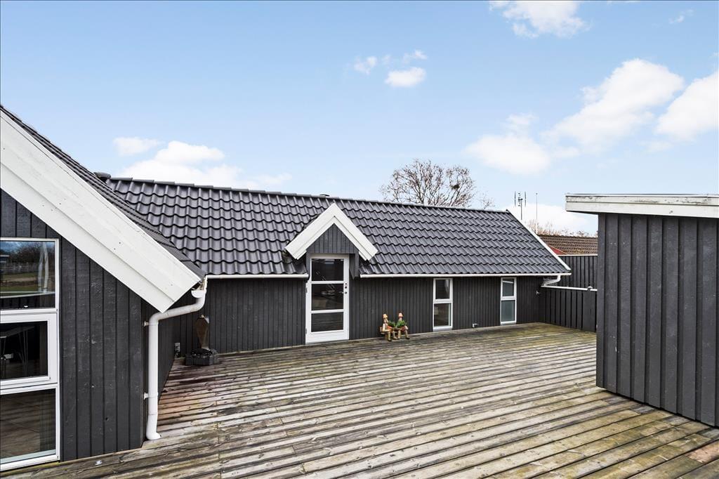 Både sommerhus og anneks omsluttes af en dejlig træterrasse på hele 40 m². Takket være det omkransende træhegn er den helt lukket, hvilket er en rar detalje, hvis I har hund eller små børn med på ferie – og hegnet skærmer samtidig også det udendørs opholdsareal lidt af. På grunden er der desuden en grusbelagt indkørsel og græsplæne.