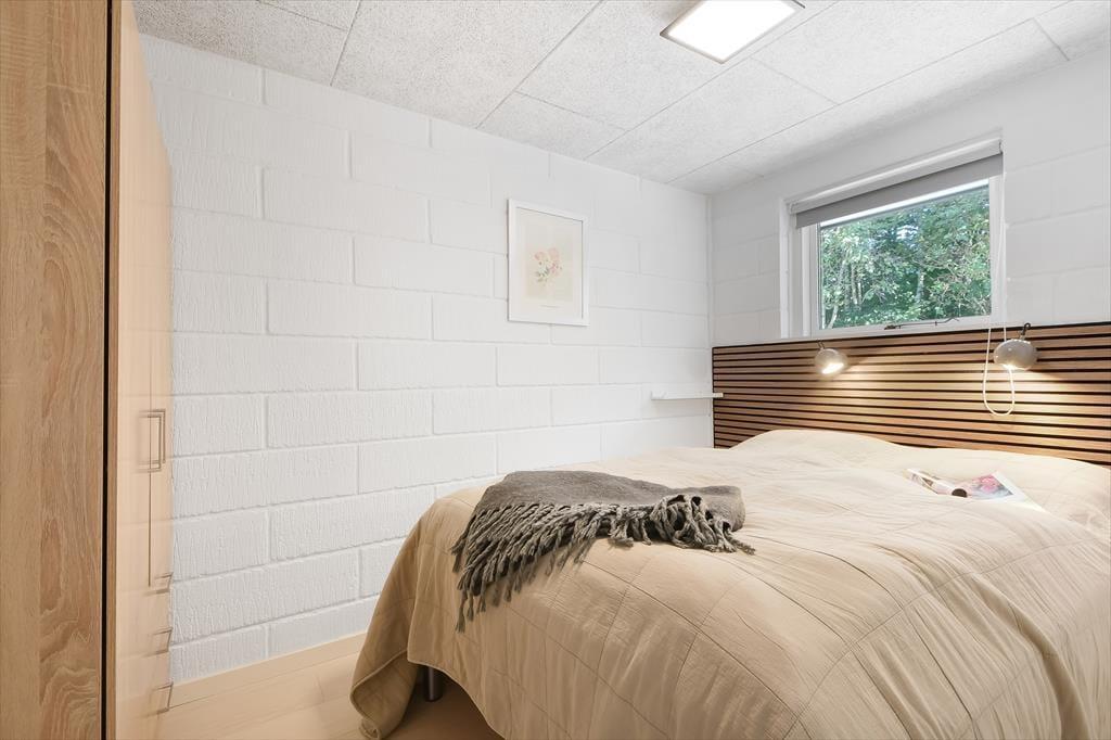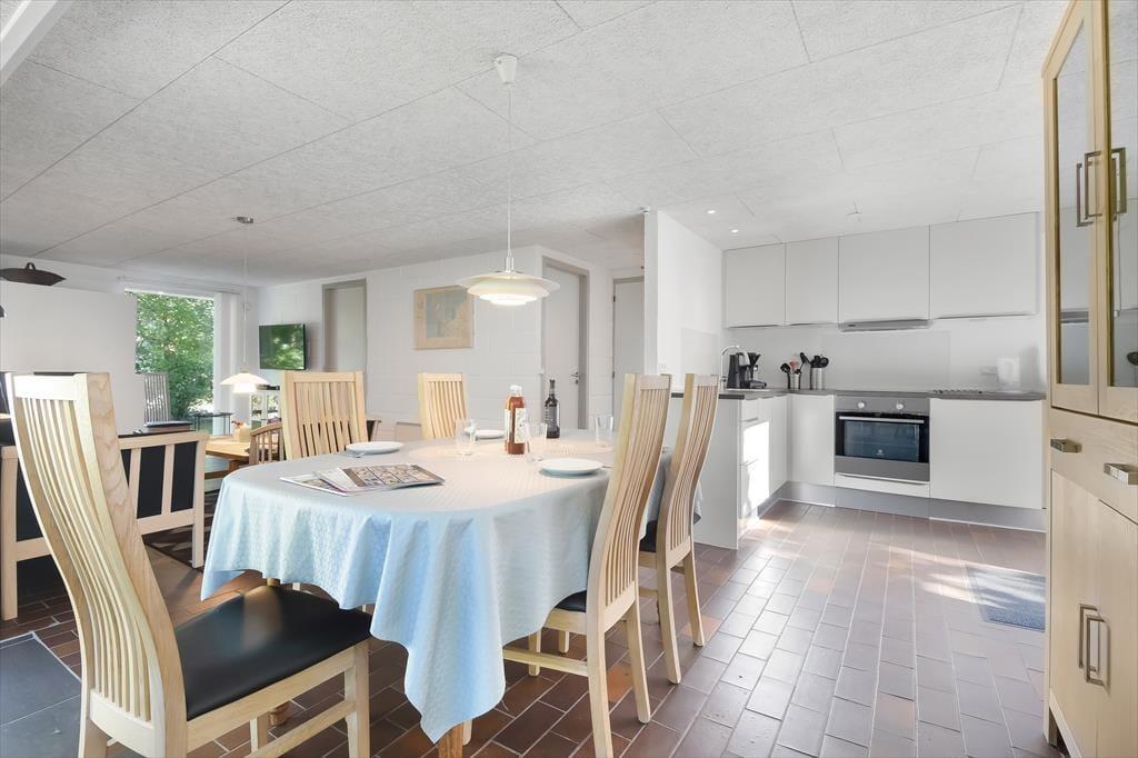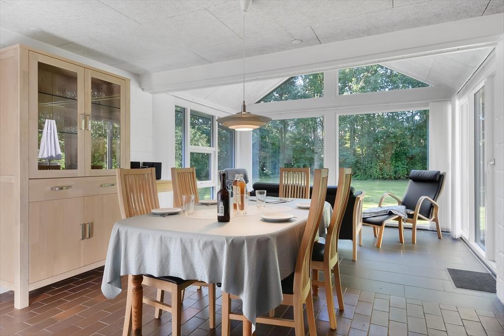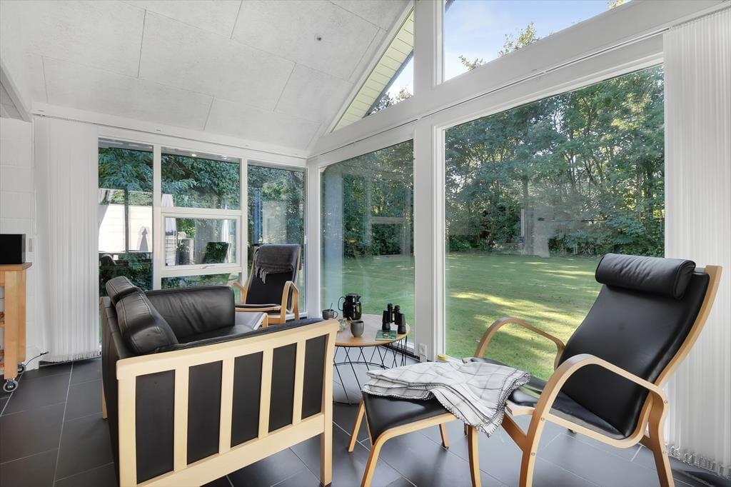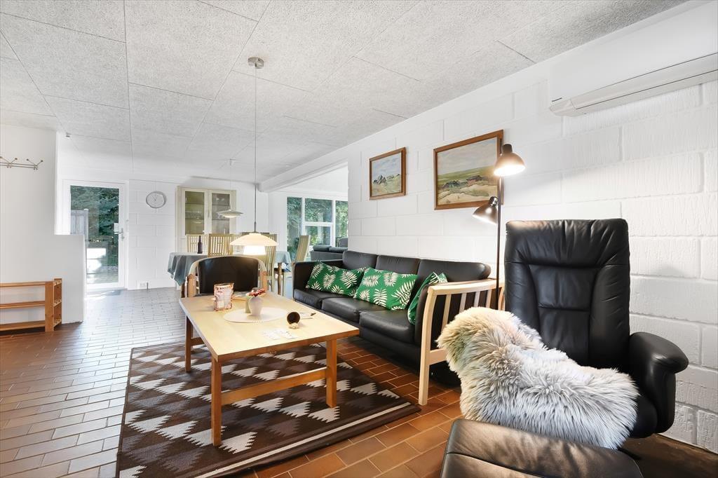 Den skønne beliggenhed er bestemt ikke eneste kvalitet ved sommerhuset. Den gedigne ejendom er senest blevet renoveret i 2018, og det kan blandt andet ses i den moderne køkkenafdeling, der ligger i åben forbindelse med stuen. Her i stuen hører pejseindsatsen til de charmerende detaljer, og de store vinduespartier sørger for, at I får glæde af det gode lysindfald og udsigten til den grønne have, når I hygger jer indenfor i varmen. Er det ved at være sengetid, kan I skiftes til at børste tænder på badeværelset, inden I går til ro på de to soveværelser, der er indrettet med henholdsvis en dobbeltseng og to enkeltsenge. Har I brug for at vaske tøj eller fryse fisk fra fisketuren ned, har I for øvrigt adgang til et udhus med både vaskemaskine og kummefryser.