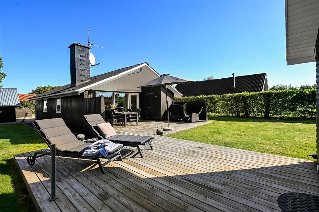 Når I holder ferie i dette hyggelige sommerhus i Bork Havn, kan I sagtens invitere et par gode venner med. I haven ligger nemlig et stort anneks med ekstra sengepladser og egen terrasse, så det er perfekt til gæstevisit.