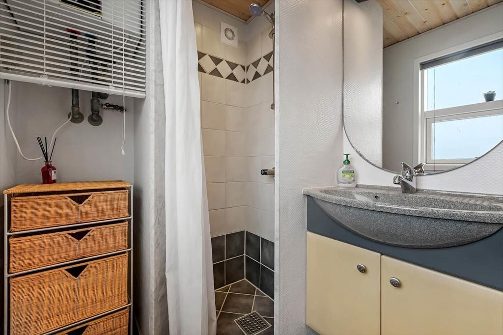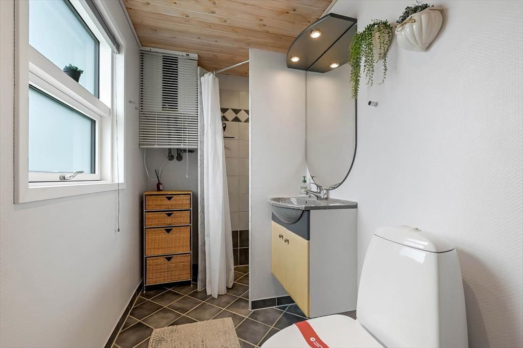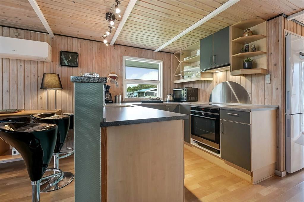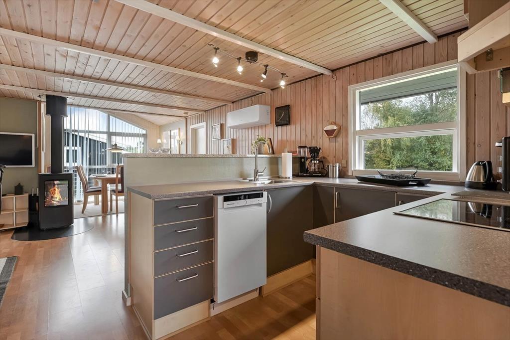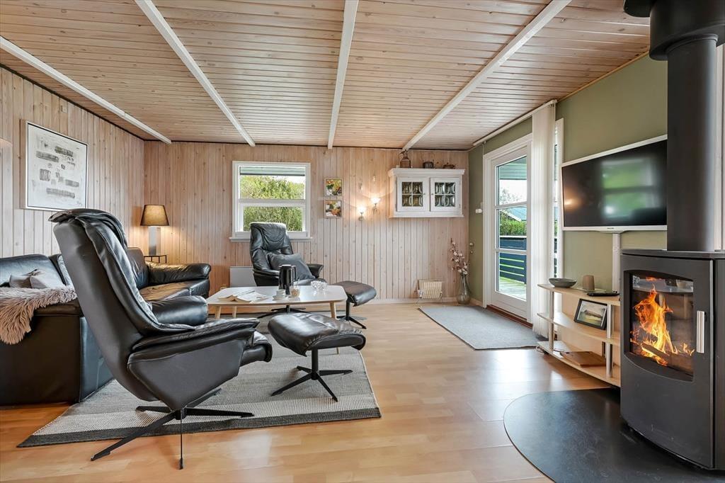 Sommerhuset er renoveret i 2015, så både inde og ude præsenterer det sig på pæn og velholdt vis. Inden døre er alle 65 m² fornuftigt udnyttet, så her er blandt andet to soveværelser at brede sig på, der i alt kan rumme fire personer. Derudover giver et depot rum mulighed for opbevaring. Når familien vil tilbringe tiden sammen, kan I mødes i den lyse og luftige stue for at spille brætspil, se film eller hygge jer med madlavningen i det åbne køkken. Brændeovnen kan I tænde op, hvis der skal skrues lidt ekstra op for hyggestemningen – og der er også en varmepumpe, som både kan varme og køle alt efter årstiden. Er det koldt udenfor, kan I også tænde for gulvvarmen på badeværelset, så I får lunet fødderne, når I børster tænder inden sengetid.