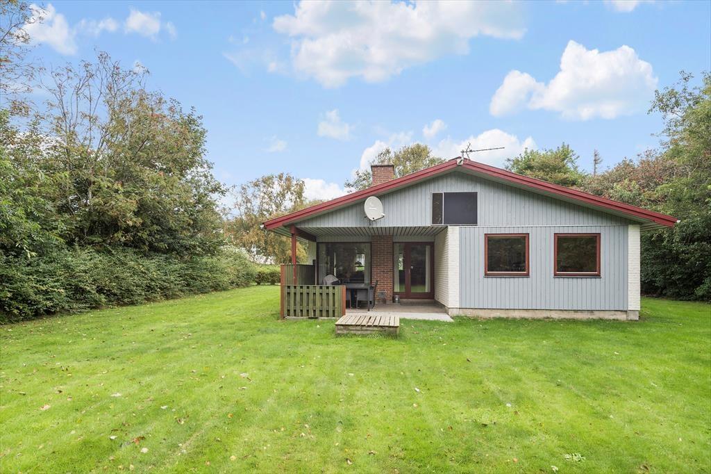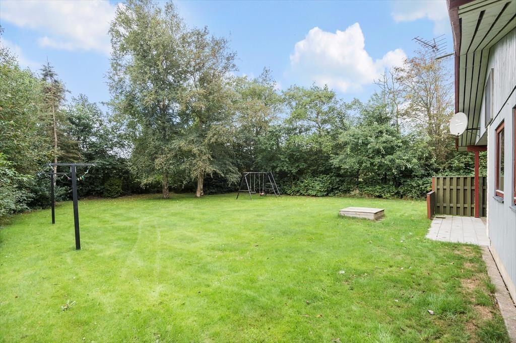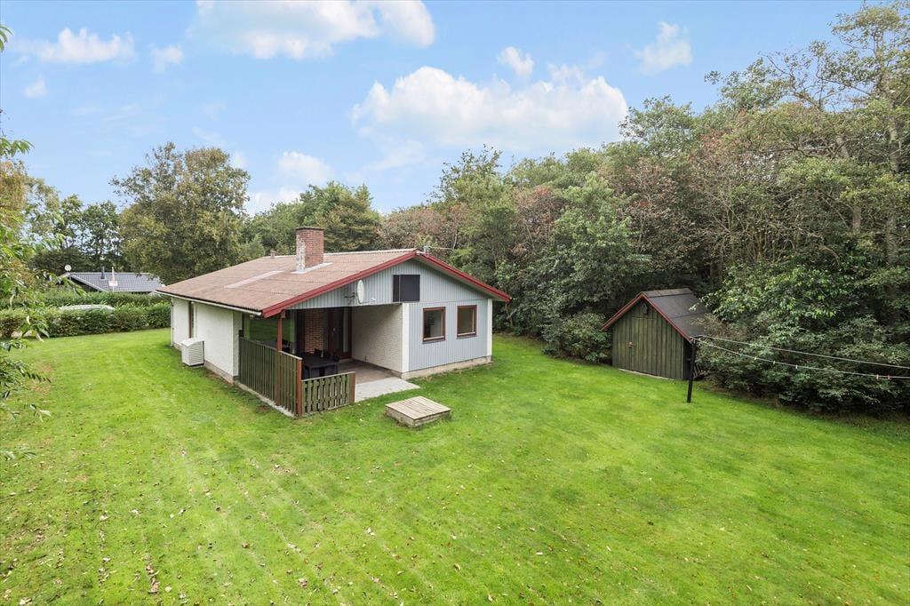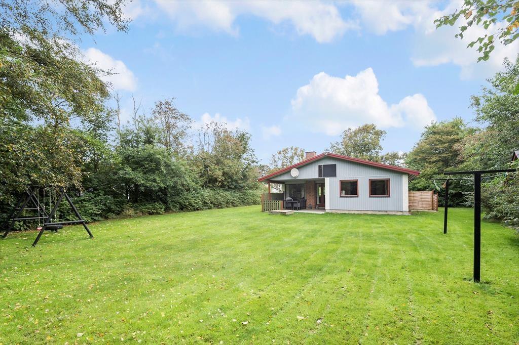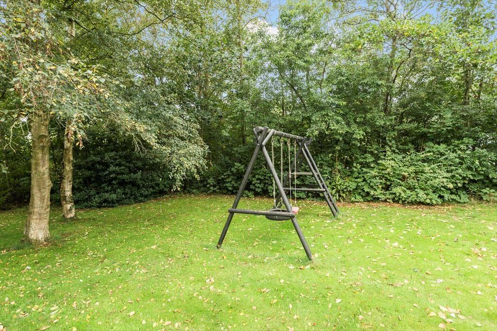 Børnevenlige faciliteter finder I også ude i det fri på den 1500 m2 store grund. Her er der nemlig både gyngestativ og sandkasse til de alleryngste feriegæster, og hvis hele familien skal aktiveres, kan I spille havespil eller lege fangeleg på den velanlagte græsplæne. Er det tid til en pause i skyggen, kan I sætte jer på den overdækkede, sydvestvendte terrasse, som er et skønt sted at blive siddende til langt ud på de lyse sommeraftner.