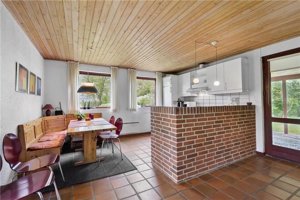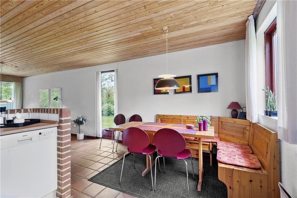 Holder I ferie på et tidspunkt af året, hvor I gerne vil tilbringe mange timer inden døre, vil sommerhusets stue fungere som det oplagte samlingspunkt både morgen, middag og aften. I kan starte med at servere dagens første kop kaffe ved spisekrogen i det åbne køkken – og her kan I egentlig sagtens blive siddende for at spille brætspil, tegne og lave andre hyggelige fællesaktiviteter. Vil I sidde lidt mere komfortabelt, kan I rykke hen i sofaafdelingen for at se film på TV’et, og vil I skrue ekstra op for den gode stemning, kan I tænde op i brændeovnen. Et badeværelse og tre soveværelser hører også med til planløsningen, og der er en barnestol til rådighed til småbørnsfamilier.