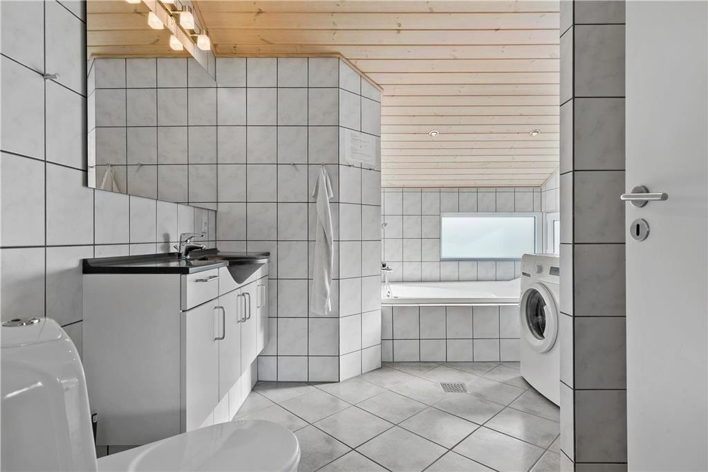 Sommerhuset er opført i 2014 og som man kan forvente af et moderne byggeri, er det lyst og indbydende inden døre. På klassisk sommerhusmanér er der brændeovn og en varmepumpe med aircondition. De store vinduespartier og den flotte loftshøjde bidrager til en behagelig atmosfære. Som en lækker detalje er der gulvvarme i hele huset. I det herlige opholdsrum er køkkenet integreret med stuen, så det er her, I kan hygge jer med madlavning, lækre måltider og efterfølgende sofaafslapning. For at gøre aftenen helt perfekt, kan I slutte af med et spabad på det flotte badeværelse, inden I går til ro på et af sommerhusets tre soveværelser.