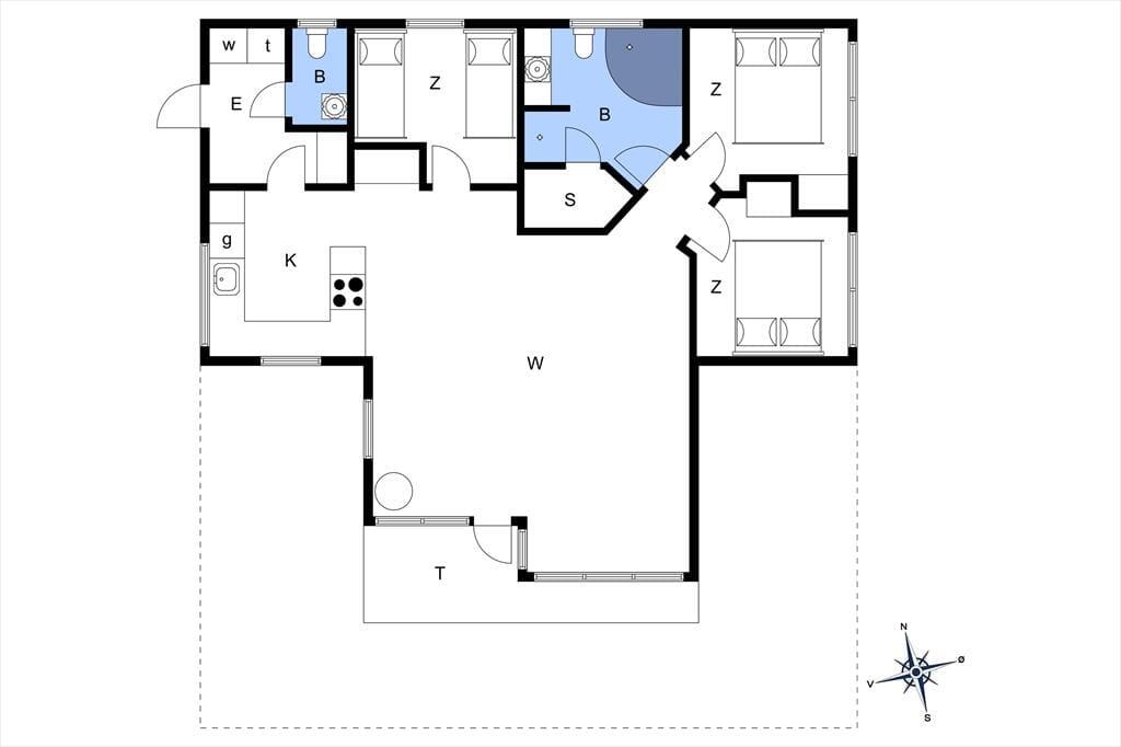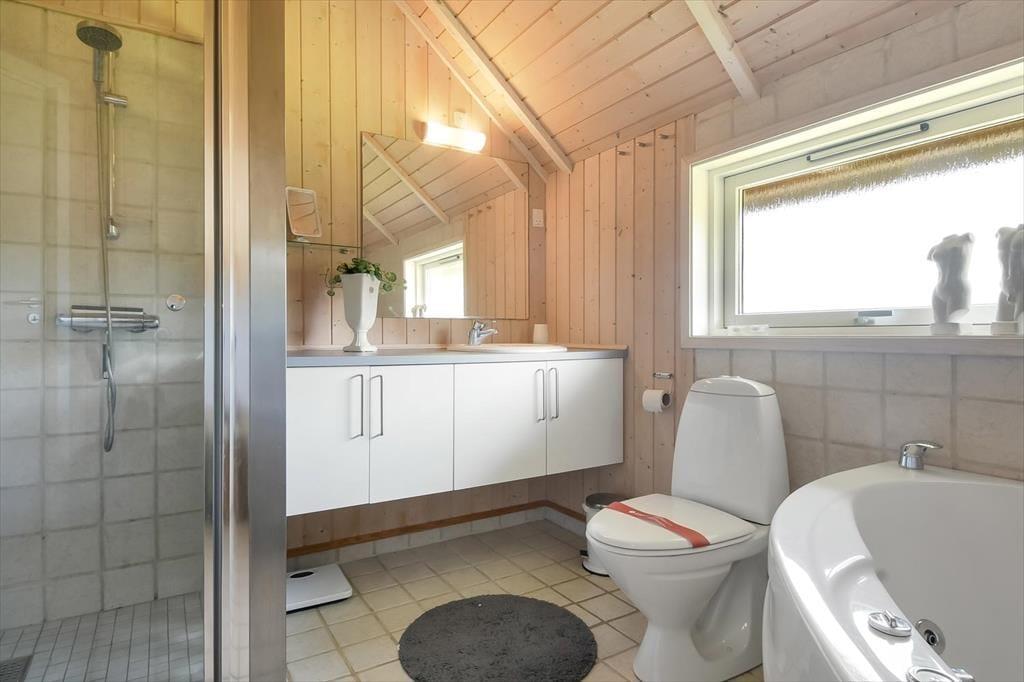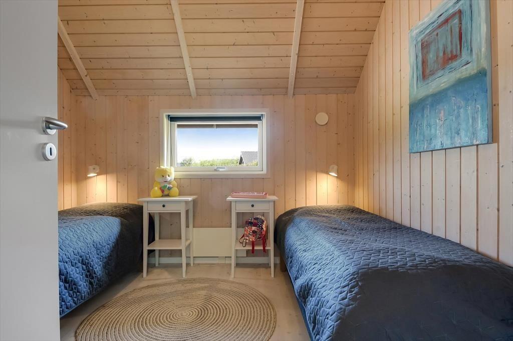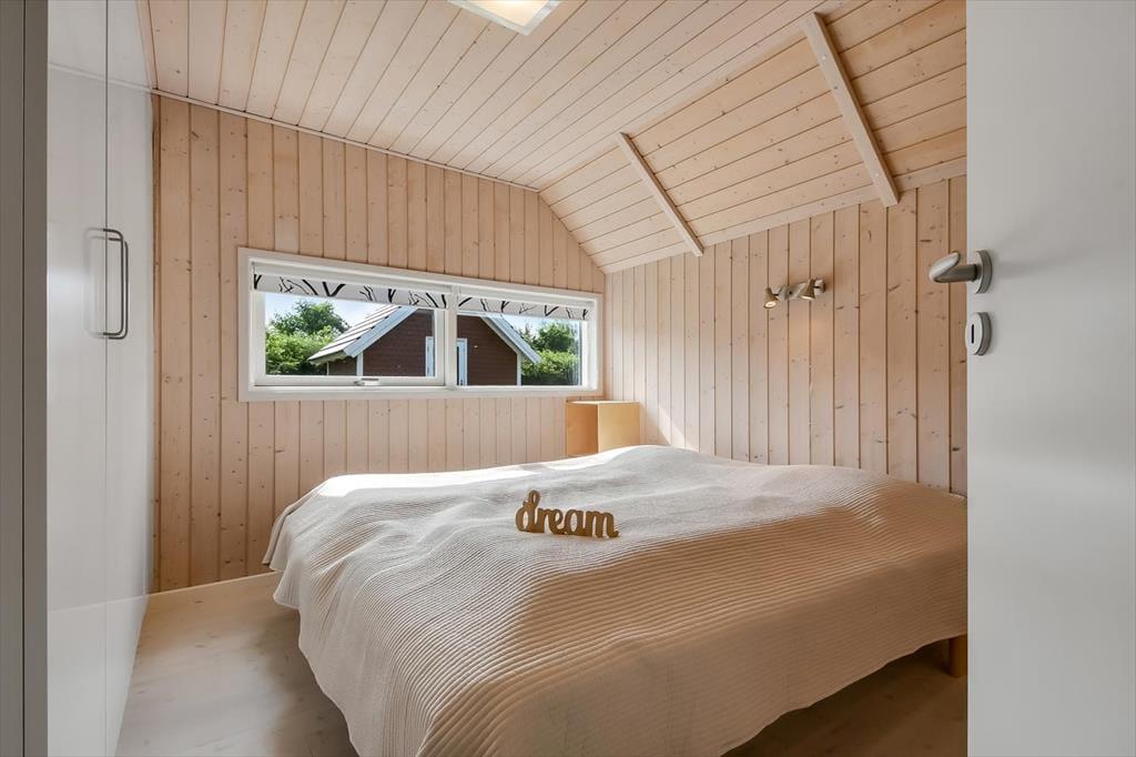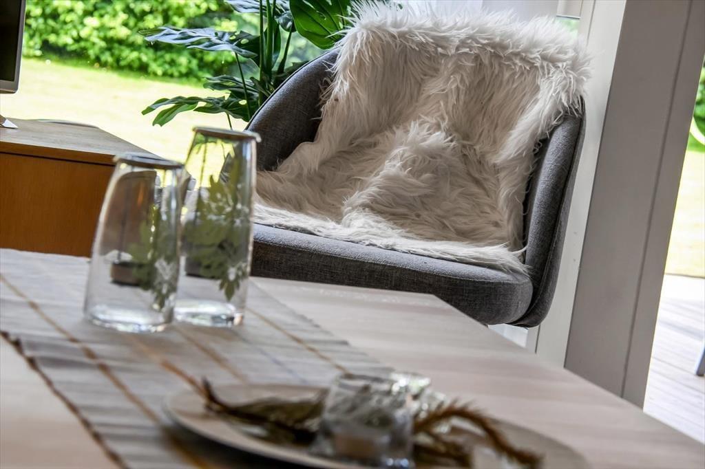 Med tre gode soveværelser, et badeværelse, et gæstetoilet og en stor stue med åbent køkken kan seks personer nemt og bekvemt være i sommerhuset – så I kan overveje, om I skal invitere et par venner med på ferie. Uanset hvem og hvor mange I bliver, vil I garantere sætte pris på husets indbydende atmosfære og hyggelige indretning med komfortabelt møblement. Overalt er der lyse trælister på væggene og loft til kip i klassisk sommerhusstil, og særligt i stuen er lysindfaldet ekstra godt takket være det store vinduesparti, der går fra gulv til loft. En brændeovn står klar til de kølige aftner, og hvis I har brug for digital underholdning, gør stuens Smart-TV det nemt at se jeres yndlingsfilm og -serier. Trænger I til at slappe fuldstændigt af, kan I gøre klar til et varmt spabad og en tur i saunaen på det store livsnyderbadeværelse.