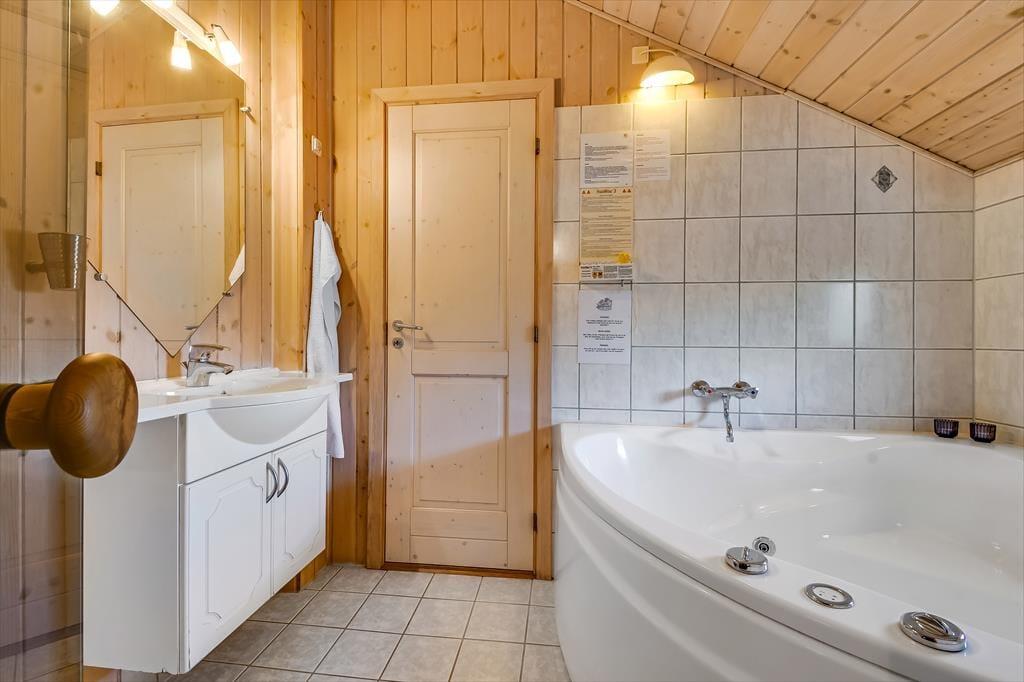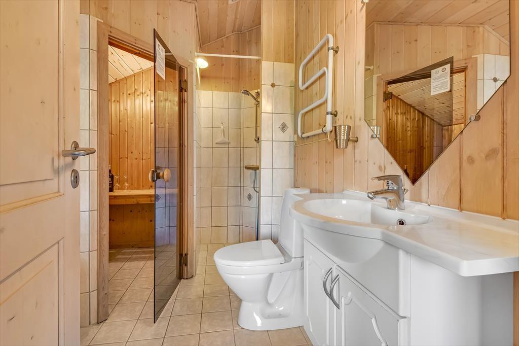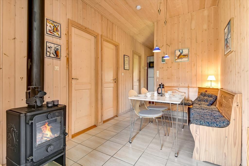 Det er virkelig værd at bemærke, hvor godt sommerhuset er indrettet. Det er ikke prangende i størrelsen, men alligevel er der fundet plads til tre gode soveværelser, et stort badeværelse, en entré med vaskemaskine samt en dejlig åben opholdsafdeling med stue og tilstødende køkken. Alle rum præsenterer sig på lys og indbydende vis – ikke mindst stuen, som er indrettet med brændeovn og komfortabelt møblement, der indbyder til hyggeligt familiesamvær med god tid til at snakke og slappe af. Ferielivet kan også nydes i stor stil på badeværelset, for det er udstyret med både spabad og sauna, som er helt perfekt til en kølig eftermiddag eller aften.