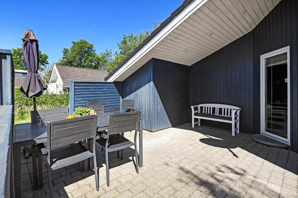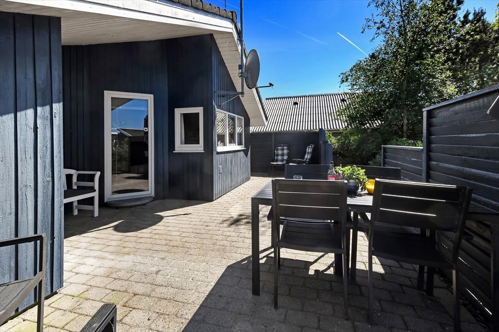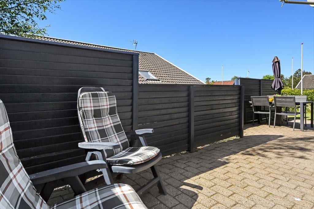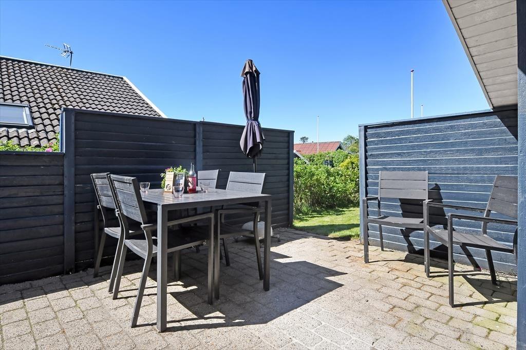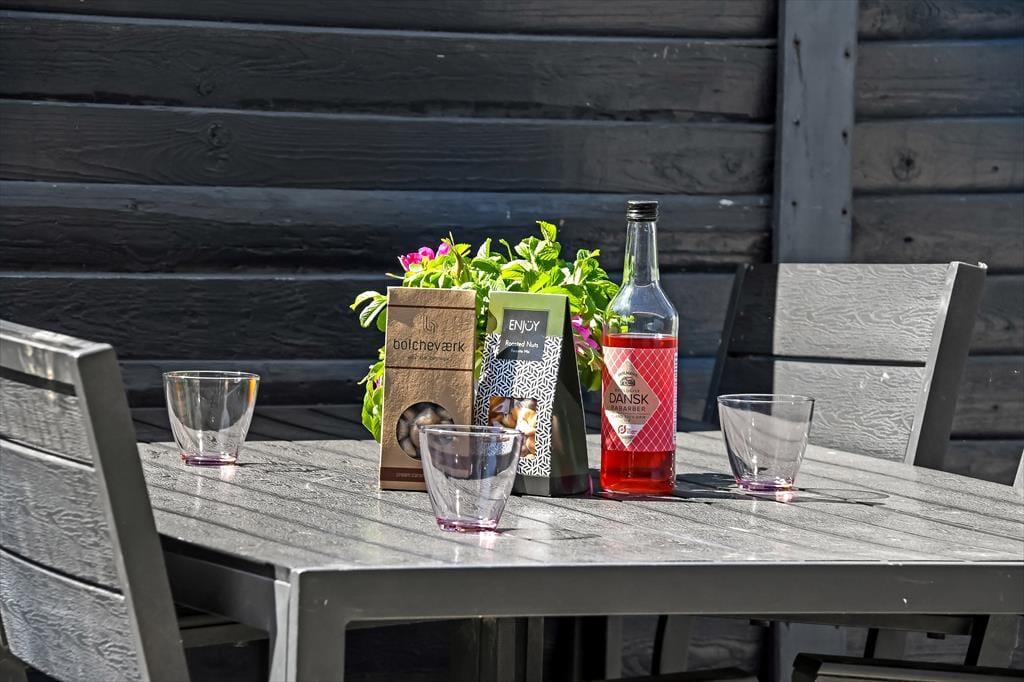 Afslapningsstunderne kan også foregå ude i det fri på den lille, men velanlagte grund. Her er der både en græsplæne at lege på og flisebelægning til bilen, mens den sydvendte, ugenerede terrasse er det helt rette sted til solbadning og sommerfrokoster.