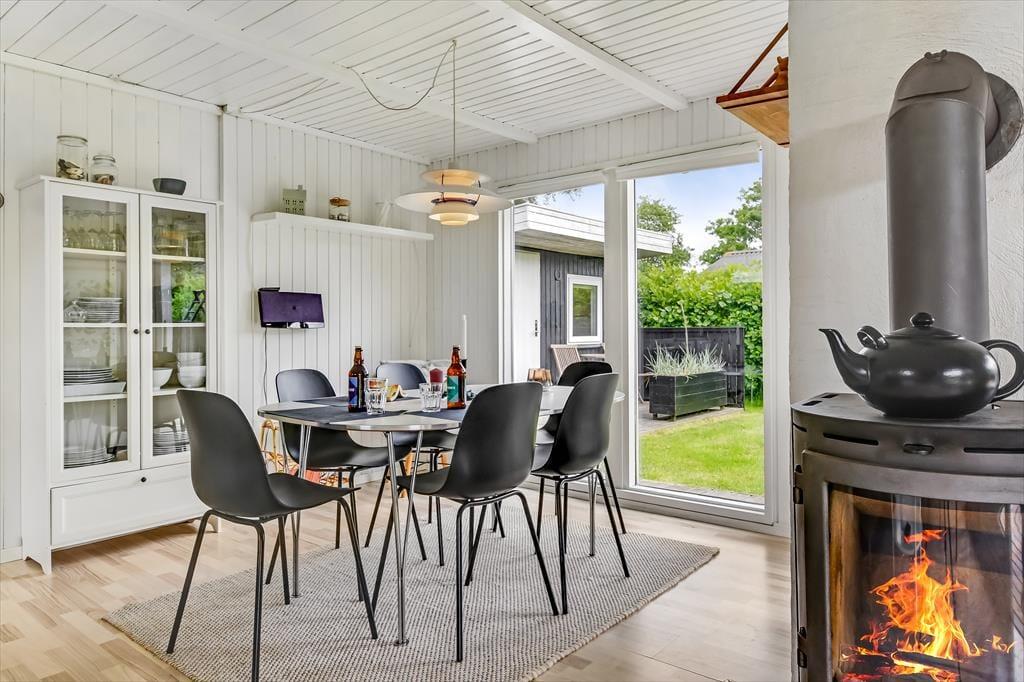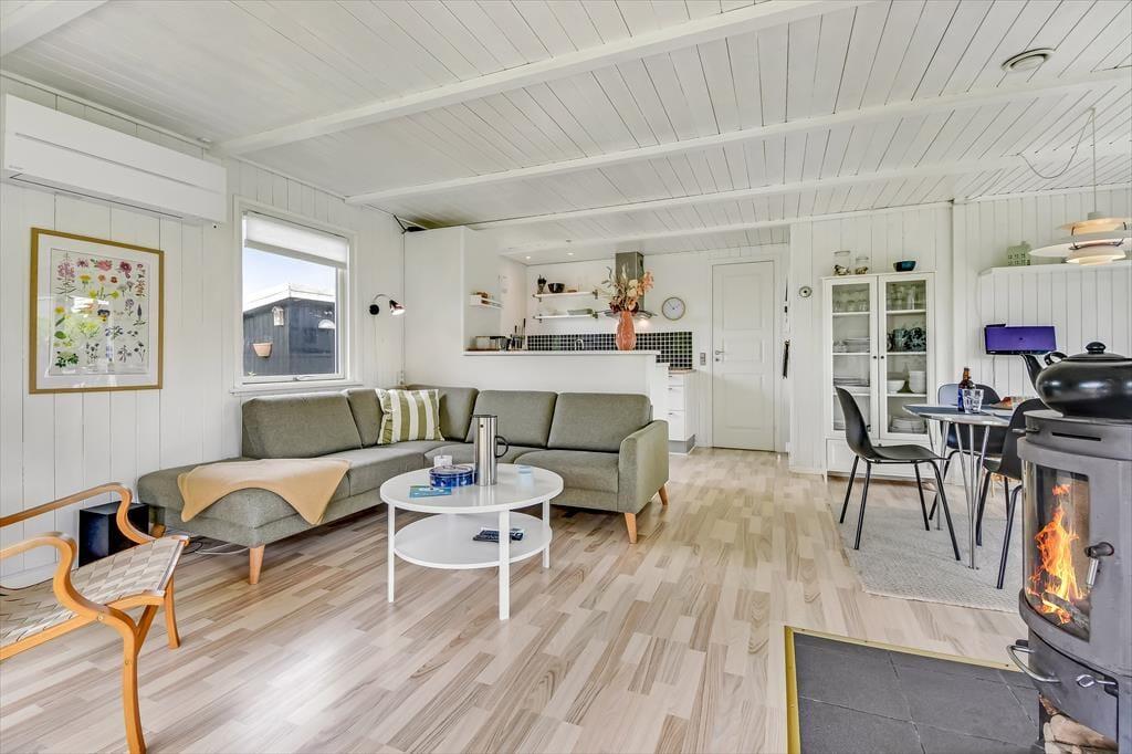 Sommerhuset ligger i bunden af en lille vej i et lukket område, bare ti minutters gang fra Bork Havns surfstrand, der ligger så smukt ud mod Ringkøbing Fjord. Ved siden af finder du byens charmerende havnemiljø, og derefter kommer den børnevenlige badestrand, så der er noget for alle aldersgrupper og temperamenter, hvis du og familien ønsker at bruge dagen ved vandet – og derudover har I bare en kort køretur i bil til Nymindegab Strand, hvis det er Vesterhavet, der trækker. Bork Legeland, Bork Vikingehavn og s vikingeinspirerede minigolfbane sørger for ekstra underholdning, og takket være byens cykeludlejning kan du tage på naturskønne cykeludflugter langs med fjorden.