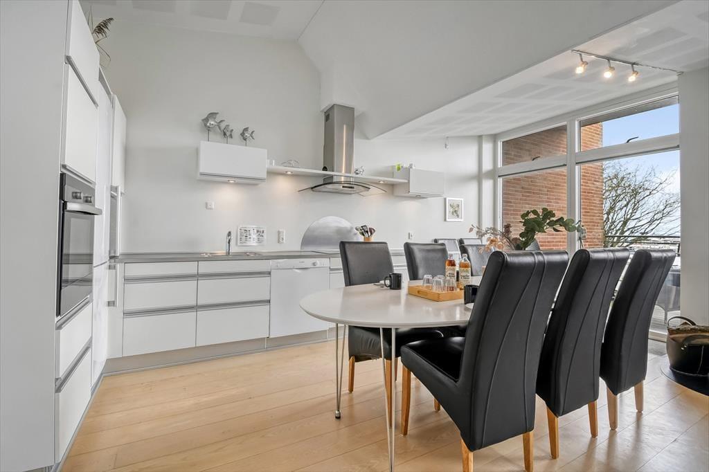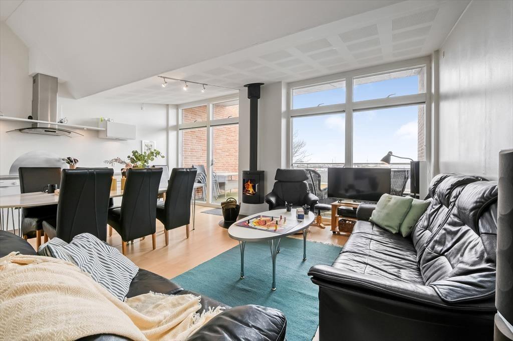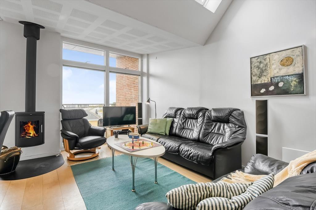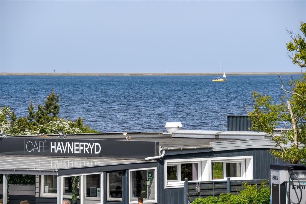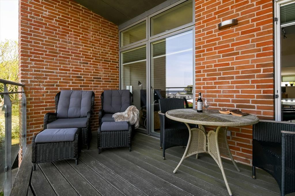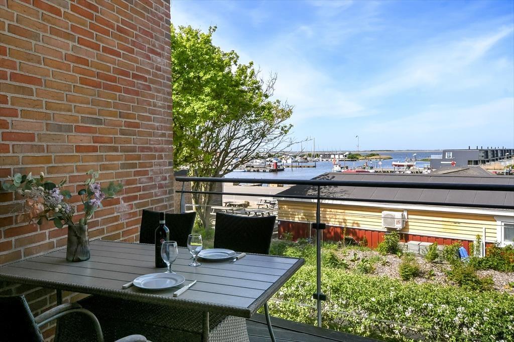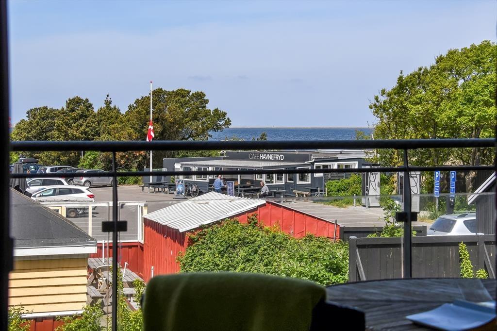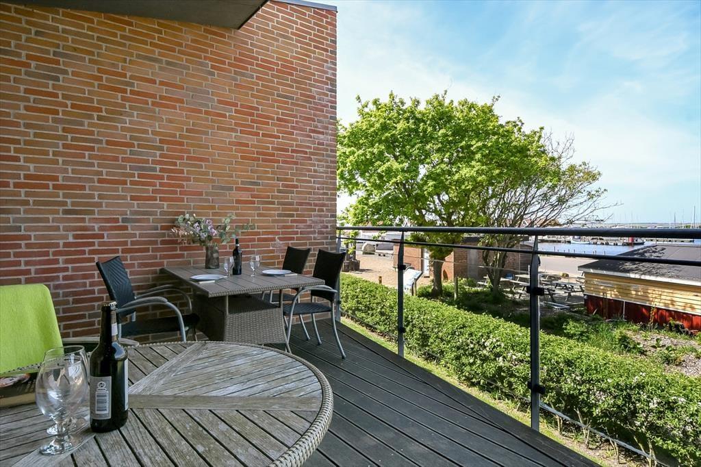 Fra førstesalens stue har I direkte adgang til en overdækket altan, der vender mod vest og dermed ud mod det fine havnemiljø. Der er også en delvist overdækket, vestvendt terrasse, og på østsiden af lejligheden kan I sætte jer i dagens første solstråler, mens I taler om, hvilke hyggelige ferieaktiviteter der skal på programmet.