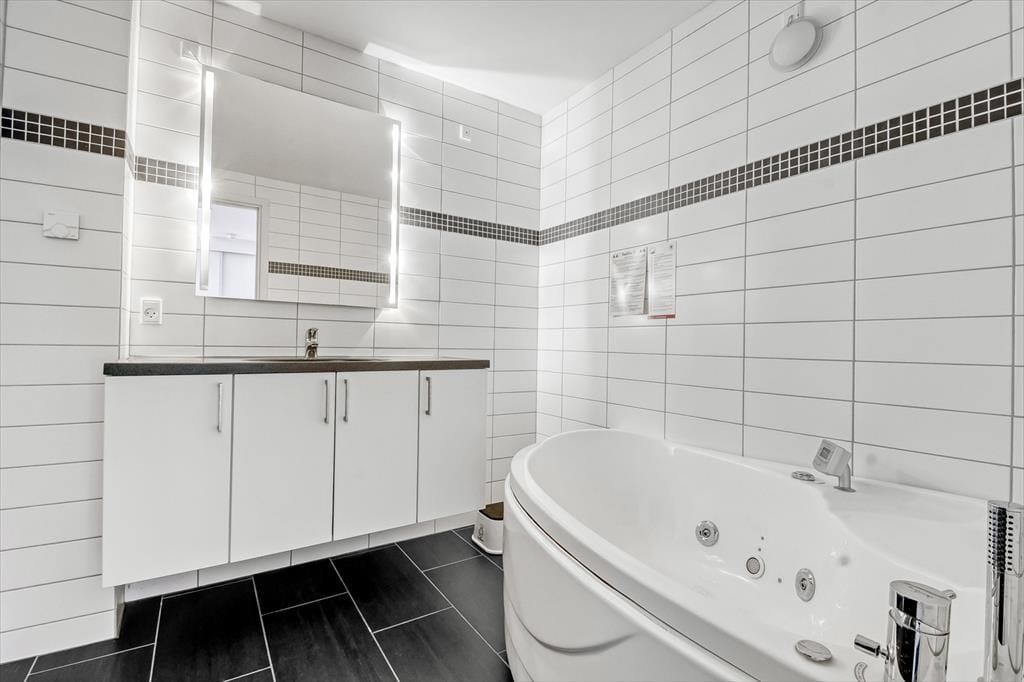 Denne store lejlighed i Bork Havn er indrettet på udsøgt vis, så op til otte feriegæster kan sagtens holde ferie sammen her. Inden døre er ferieboligen indrettet med blandt andet brændeovn og spabad, og ude kan I nyde livet på terrasserne og altanen, hvoraf sidstnævnte lokker med sin herlige fjordudsigt.
