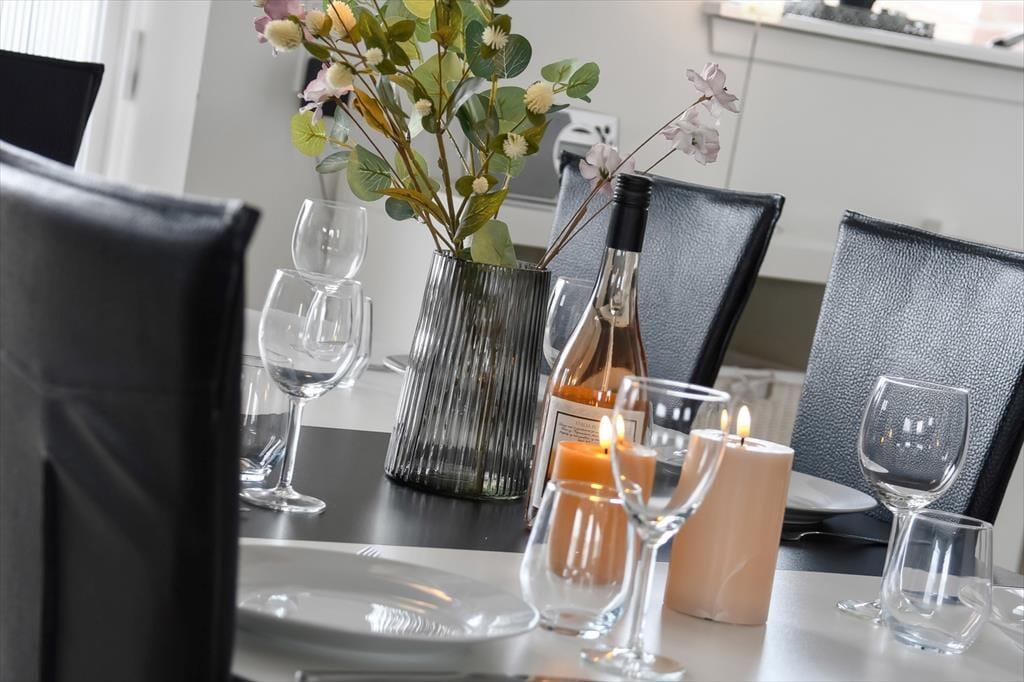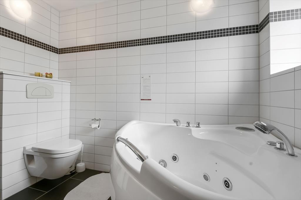 Ferielejlighedens planløsning breder sig over to etager, og I alt har I 136 lyse og velindrettede at gøre godt med oppe og nede. Opførelsesåret er 2009, og som man kan forvente af et moderne byggeri, er der mange lækre detaljer inden døre, der gør ferietilværelsen særdeles komfortabel. For eksempel er der spabad på det største af ferieboligens to badeværelser, så I kan tage en velfortjent hyggestund med et varmt bad, når I kommer hjem efter dagens udflugter. Fire soveværelser og en stor entré med vaskesøjle finder I også her, og når I vil bruge tiden sammen, kommer det til at foregå i lejlighedens store stue, der er stilrent indrettet med pænt møblement, varmepumpe og et flot åbent køkken.