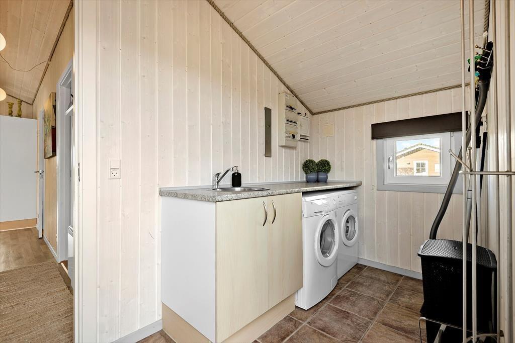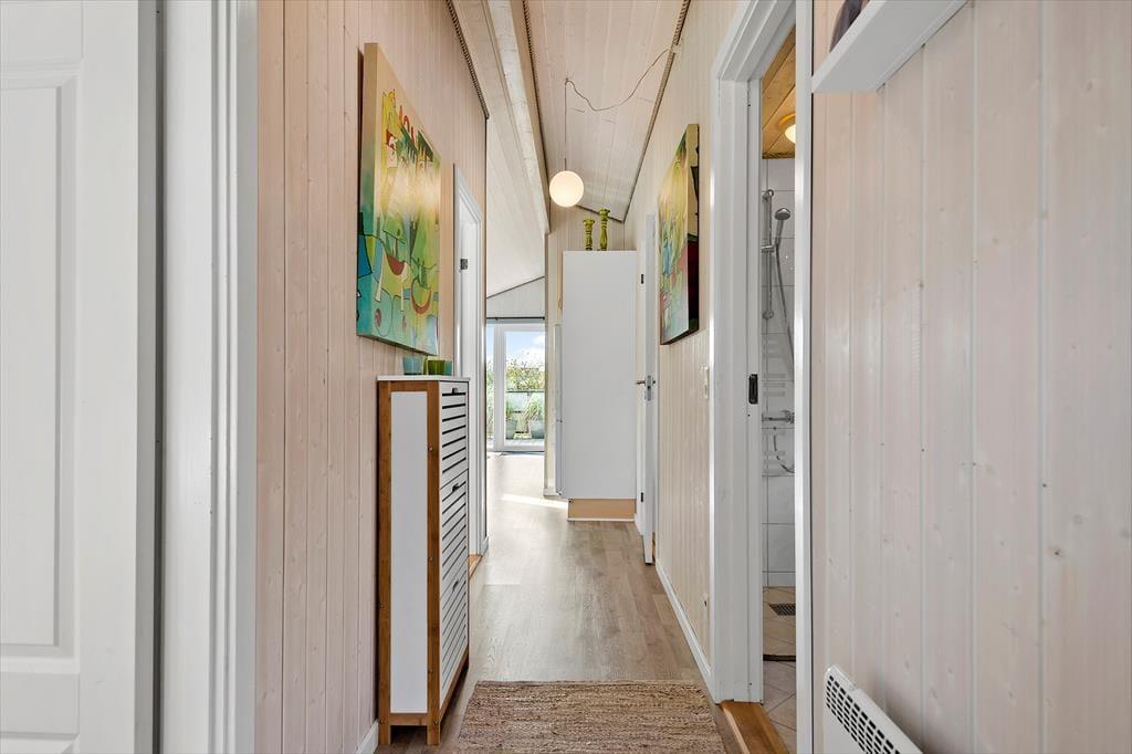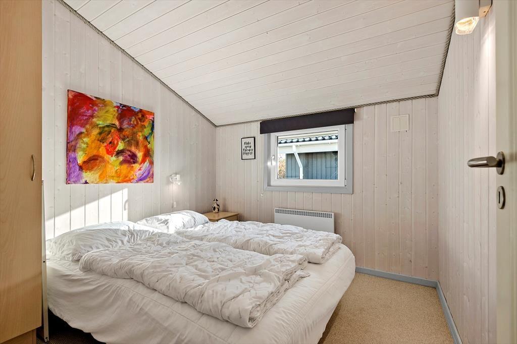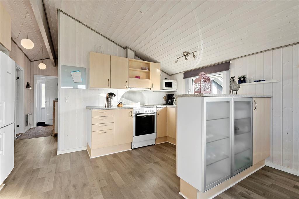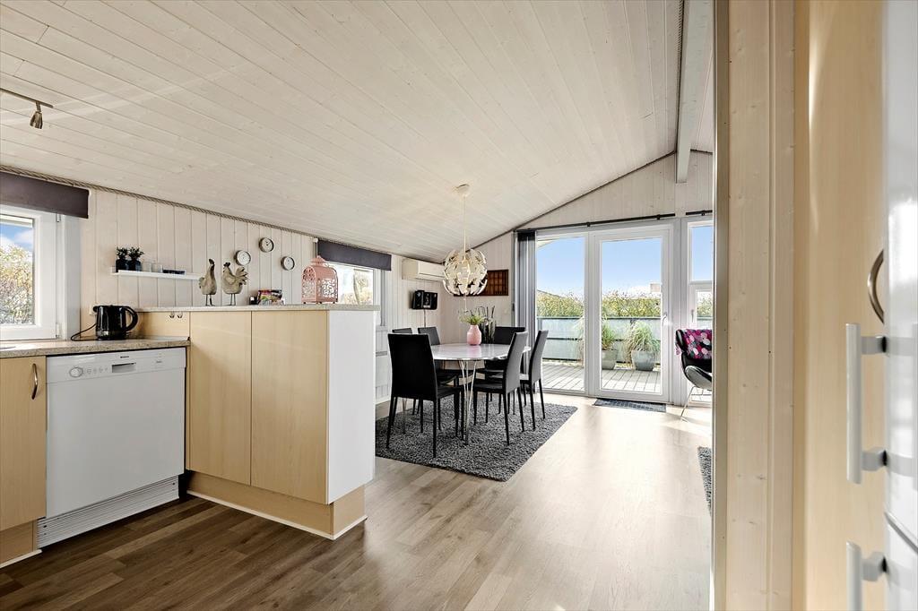 Det 75 m2 store træsommerhus er opført i 2006, og sidenhen er det blevet passet og plejet, så det fremstår pænt og velholdt. Inden døre giver det veludstyrede køkken jer en dejlig ramme om madlavningen, og på grund af den åbne forbindelse til stuen kan I sagtens hygge igennem med familien, selvom I står og rører i gryderne. I stuen er der både brændeovn og varmepumpe med køl, og det store, sydvestvendte vinduesparti i gavlen sørger for et godt lysindfald og direkte forbindelse til terrassen. Badeværelset er dejligt rummeligt, og i entréen er der både vaskemaskine og tørretumbler. Soveværelser er der tre af, og de er alle indrettet med dobbeltseng og praktiske garderobeskabe.