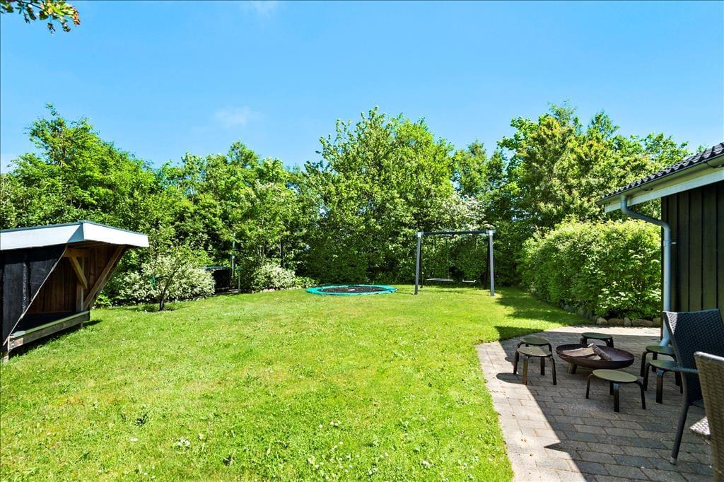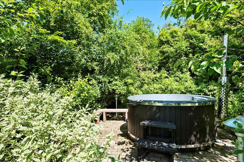 Huset ligger på en 1200 m2 stor grund med flere terrasser og hyggekroge, hvor I kan nyde den danske sommer i fulde drag – her er det altid muligt at finde en plet med sol eller skygge efter behov. Haven er lukket og meget privat, her kan man nyde et ophold i det dejlige vildmarksbad og børnene vil med sikkerhed begejstres over bålstedet, hvor I kan bage snobrød og riste skumfiduser. Der er også trampolin, og som noget helt særligt får I jeres eget shelter, hvor I kan tilbringe natten med kig til stjernehimlen.