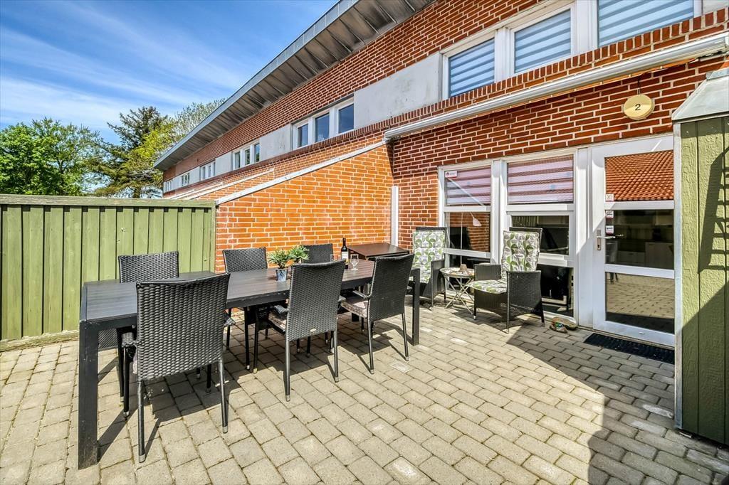 Syd for lejligheden ligger en stor fliseterrasse, der er helt åben, men dog skærmet af hegn ind mod naboterrasserne. Det er et dejligt sted at slikke sol og lade op, indtil I er klar til dagens små og store eventyr. Er I mere til skygge, kan den elektriske markise rulles ud. Har I små børn med på ferie, vil I sikkert blive glade for legepladsen, der ligger tæt på lejligheden, og øvrige familiemedlemmer kan se frem til at spille petanque, tennis og meget mere på Danlands dertil indrettede sportsbaner.