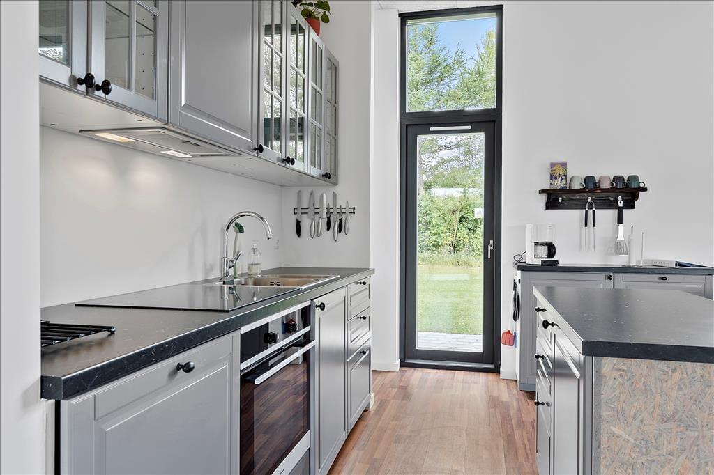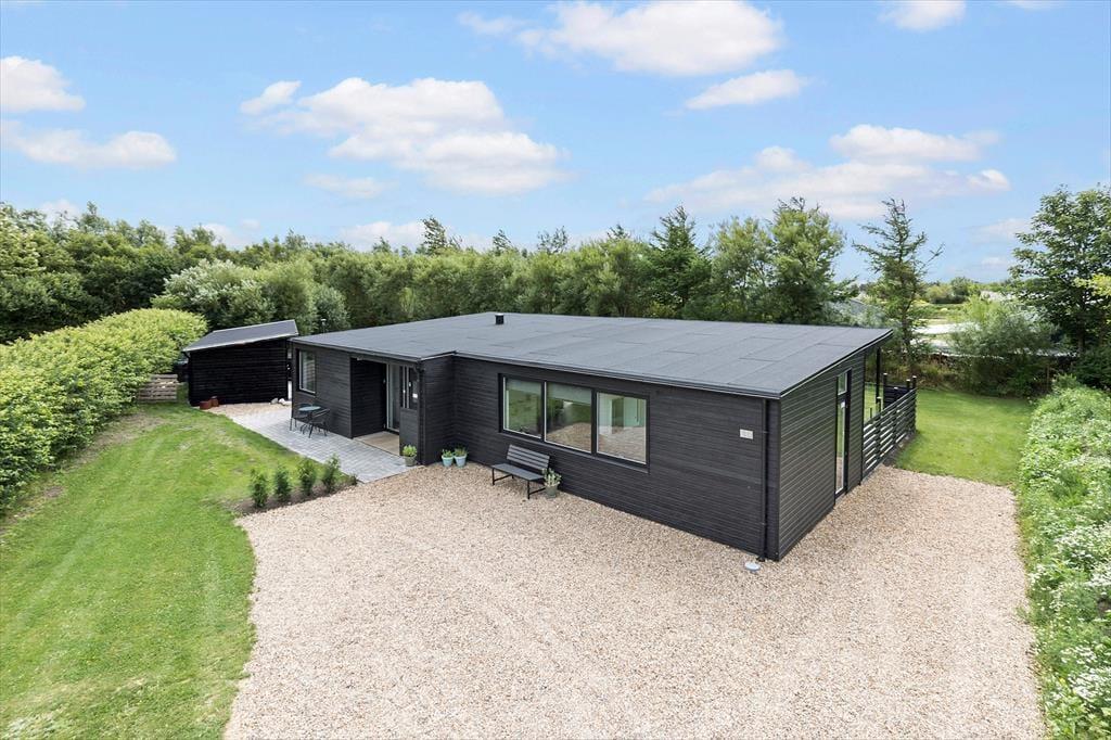 Sommerhuset er en flot og velindrettet kvalitetsejendom, der er opført så sent som i 2020. Hele 101 m2 får I at gøre godt med inden døre, og med otte sengepladser fordelt på fire soveværelser kan I roligt invitere hele familien eller en flok gode venner med på ferie. Er I mange samlet, vil I sikkert værdsætte, at der er to badeværelser i huset – og I vil nok også blive glade for husets dejlige opholdsrum med åbent køkken, hvor det er hyggeligt at samles til lækre måltider, gode samtaler, spil og andre former for feriehygge. Som en skøn detalje er der høje glasdøre i tre af soveværelserne, ved køkkenet og i stuen. Det giver ikke bare et smukt lysindfald i huset, men gør det også nemt at flytte en stor del af ferieaktiviteterne ud i det fri, så snart solen skinner.