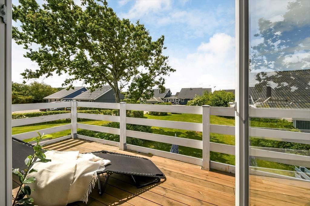 På sommerhusgrunden er der carport til bilen og en græsplæne til leg og boldspil. Afslapningsstunderne kan oplagt foregå på den 20 m2 store træterrasse, der er udstyret med havemøbler, liggestole og grill. I kan også sætte jer på førstesalens dejlige altan: Ligesom terrassen ligger den godt i forhold til solen, og så kan I samtidig nyde, at der er kig til fjorden.