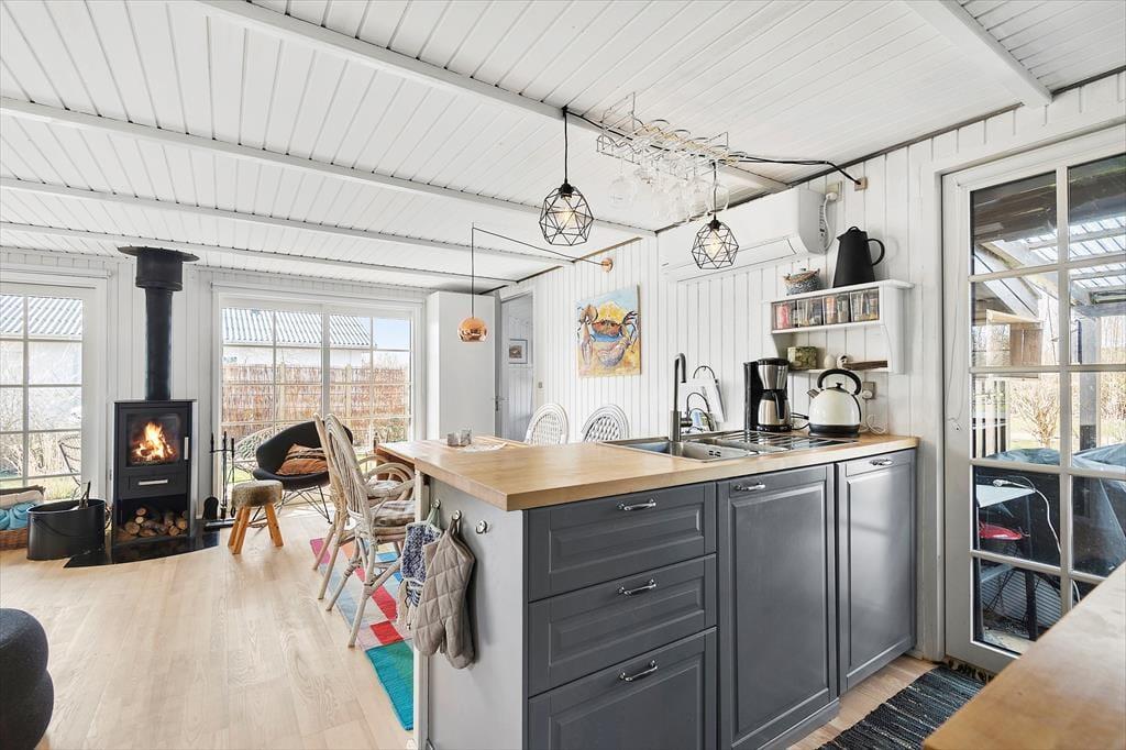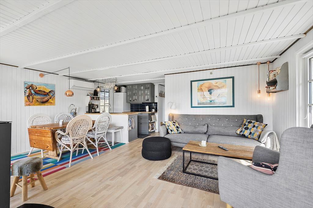 Huset byder på en god blanding af klassisk sommerhuscharme og moderne opdateringer, der sørger for et komfortabelt ferieophold. Udover huset er der også et anneks, der giver masser af fleksibilitet, når sovepladserne skal fordeles. I hovedhuset er der et skønt opholdsrum, hvor køkken, spisestue og stue er samlet i ét rum. De store vinduespartier og hvidmalede lofter gør sommerhuset lyst og dejligt at være i og fra opholdsrummet er det flere udgange til terrasser og have. I stuen og annekset er der et SMART-TV, så I kan streame film og serier (bemærk, at der ingen TV-pakke er). Herudover er der tre små værelser og et lækkert badeværelse med gulvvarme. I annekset er der et soveværelse med dobbeltseng, et gæstetoilet samt en hyggestue med et rigtigt godt naturligt lys.