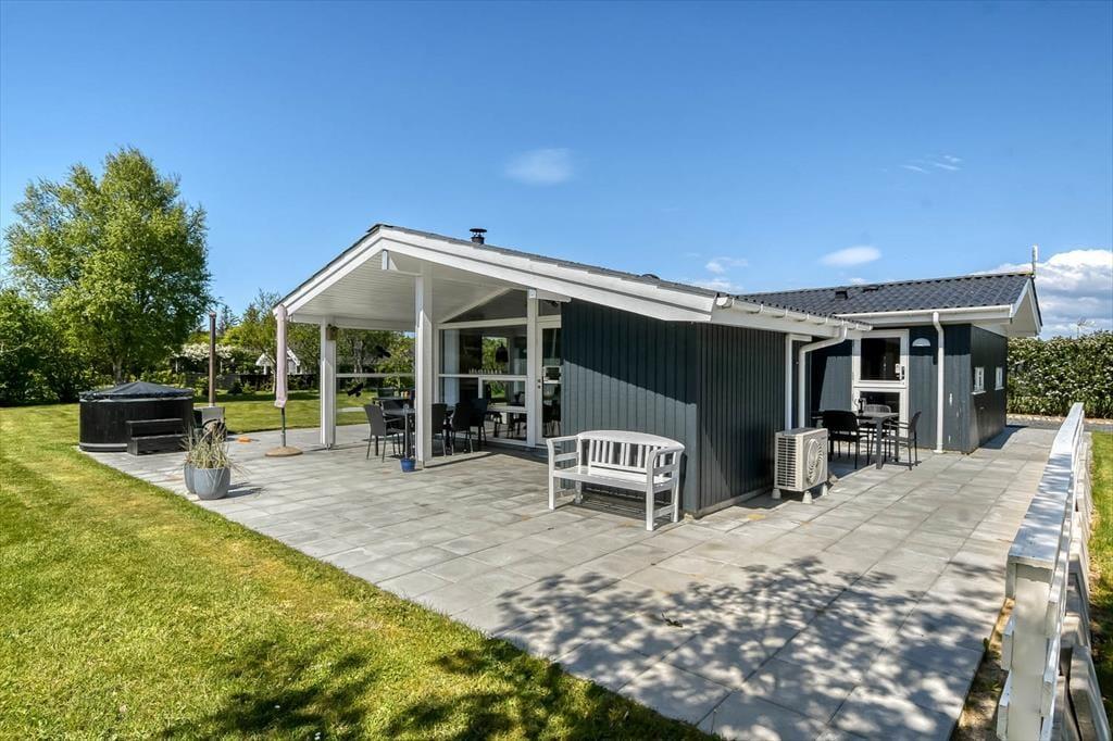 Ude i det fri har I god plads til at lege og slappe af på den 1213 m² store grund. Græsplænen omkranses af randbeplantning, og rundt om sommerhuset breder et stort og delvist overdækket terrasseområde sig, så I kan sætte jer lige der, hvor solforholdene er allerbedst.