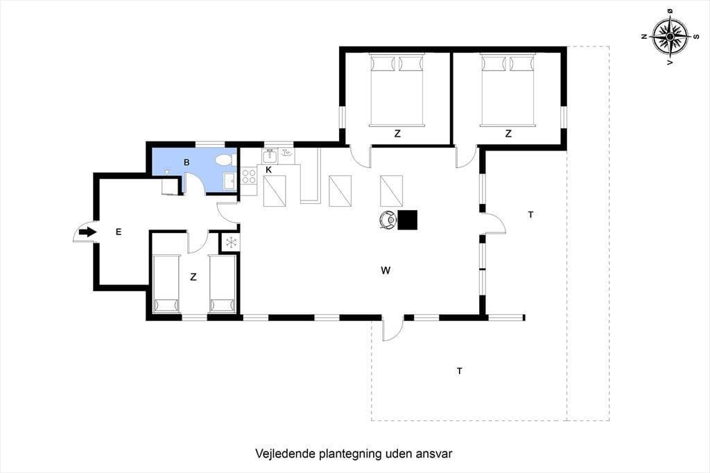 Inden døre kan I se frem til mange skønne stunder i den dejlige stue, der er indrettet med brændeovn, fladskærms-tv og pænt møblement. Ovenlysvinduerne sørger for et ekstra godt lysindfald, og den åbne forbindelse til køkkenet gør det nemt at bruge tiden sammen, også selvom der skal skrælles kartofler eller røres i gryderne før aftensmaden. På de tre gode soveværelser er der sengepladser til seks personer, for to af værelserne er udstyret med dobbeltseng og det tredje med to enkeltsenge. På flisebadeværelset kan I starte dagen med et morgenbrusebad, og entréen er dejligt rummelig, så her kan jeres overtøj og sko nemt være.