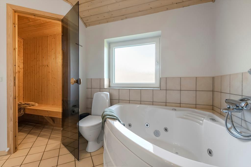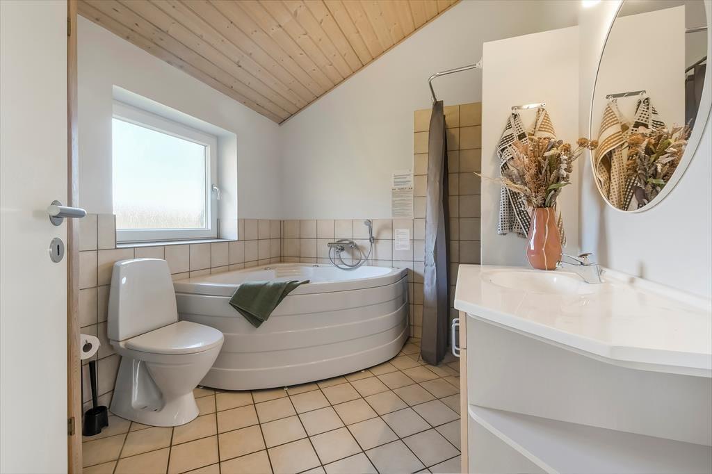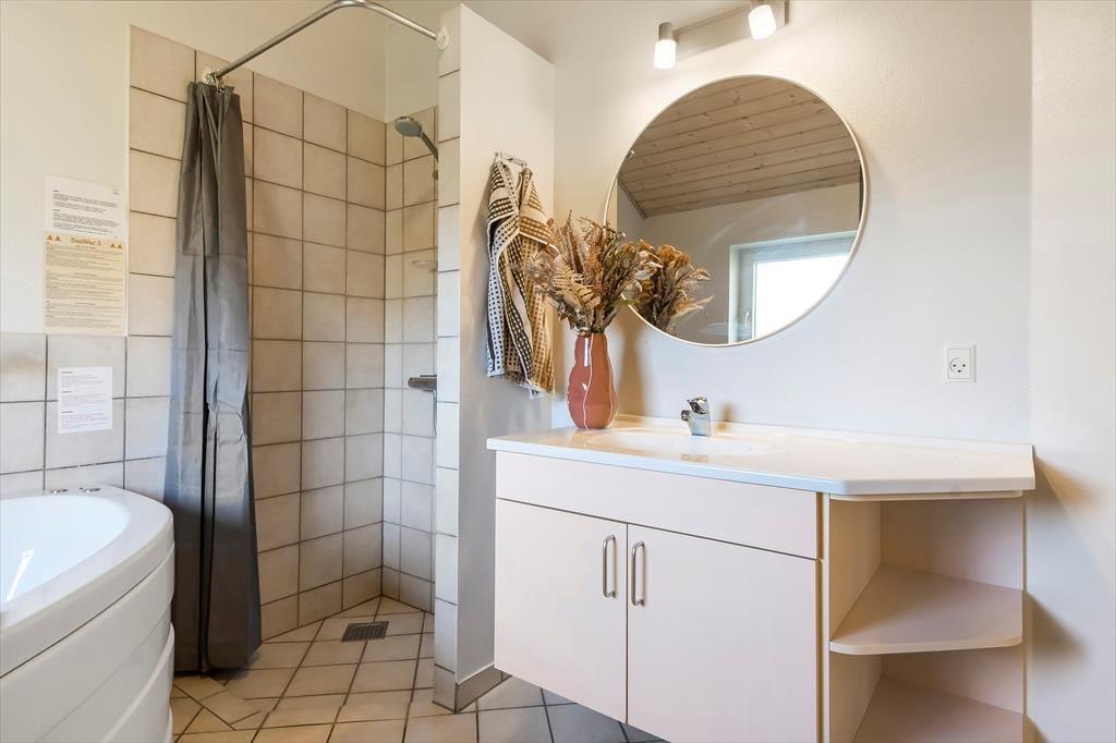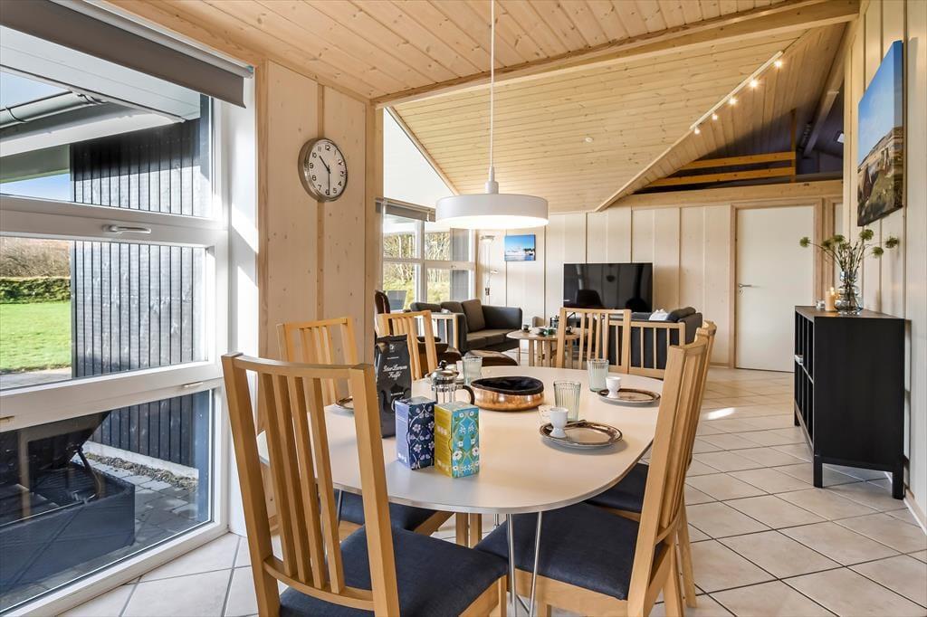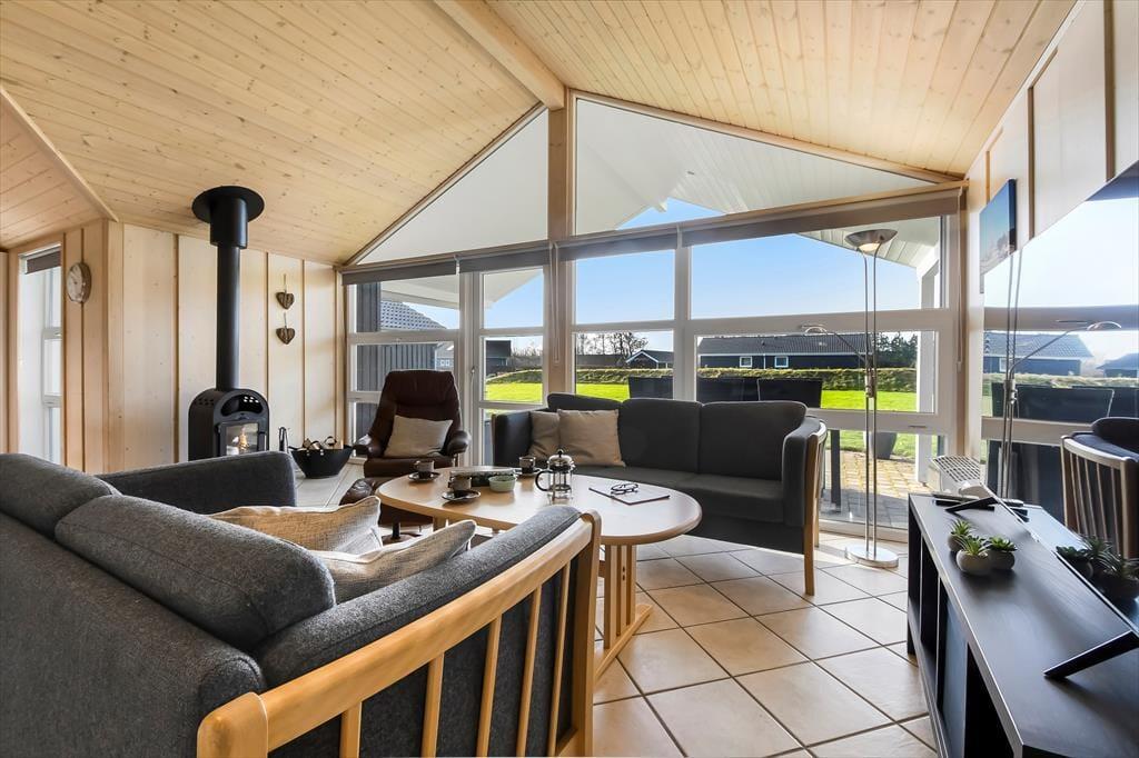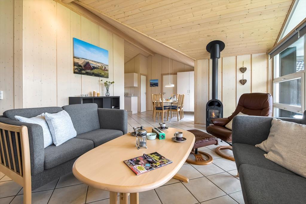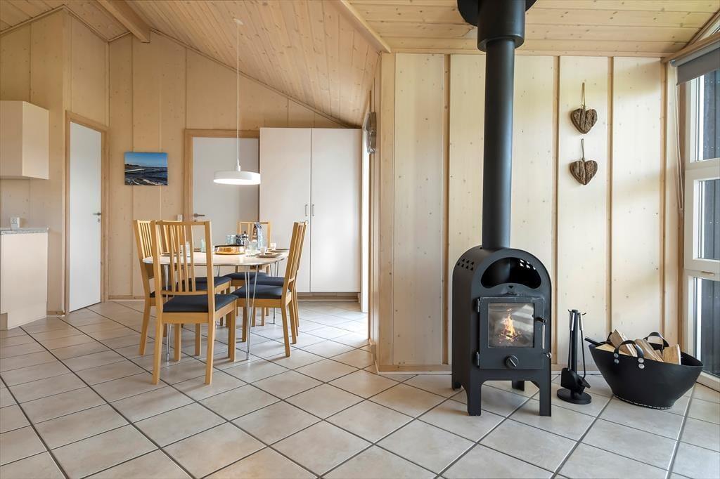 Med spabad og sauna på badeværelset, tre gode soveværelser og en brændeovn i stuen er det kun dejligt, hvis vejret lægger op til indendørs feriehygge. Huset inviterer til, at du sætter farten helt ned og slapper af med wellness og helt tilbagelænede stunder – måske bare afbrudt af en gåtur eller en anden udflugt i ny og næ. I stuen sørger det store vinduesparti for at lukke masser af dagslys ind, og terrassedøren gør det nemt at smutte ud i haven, hvis børnene eller hunden vil tumle og lege. Men det er nu også fristende bare at blive i stuen for at læse i sofaen, spille kortspil ved spisebordet eller lave mad i det åbne og veludstyrede køkken.
