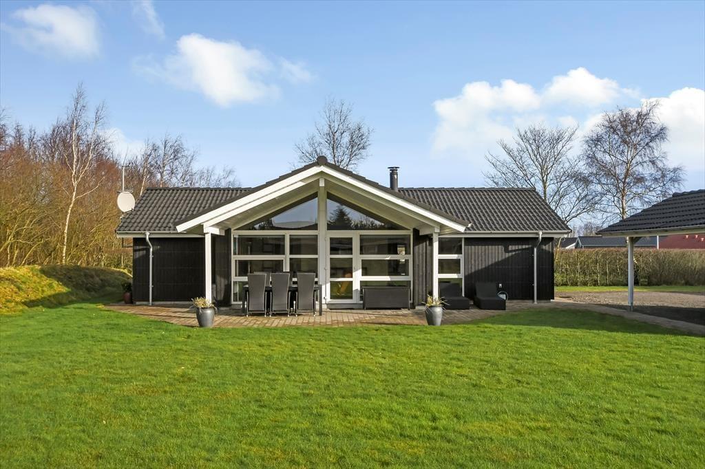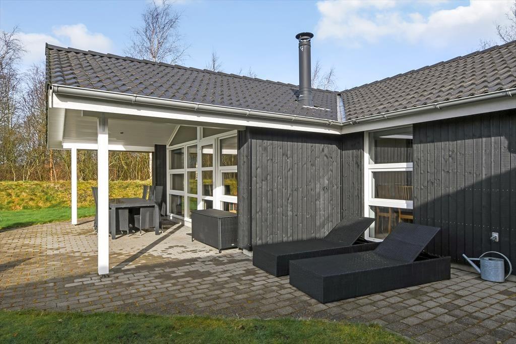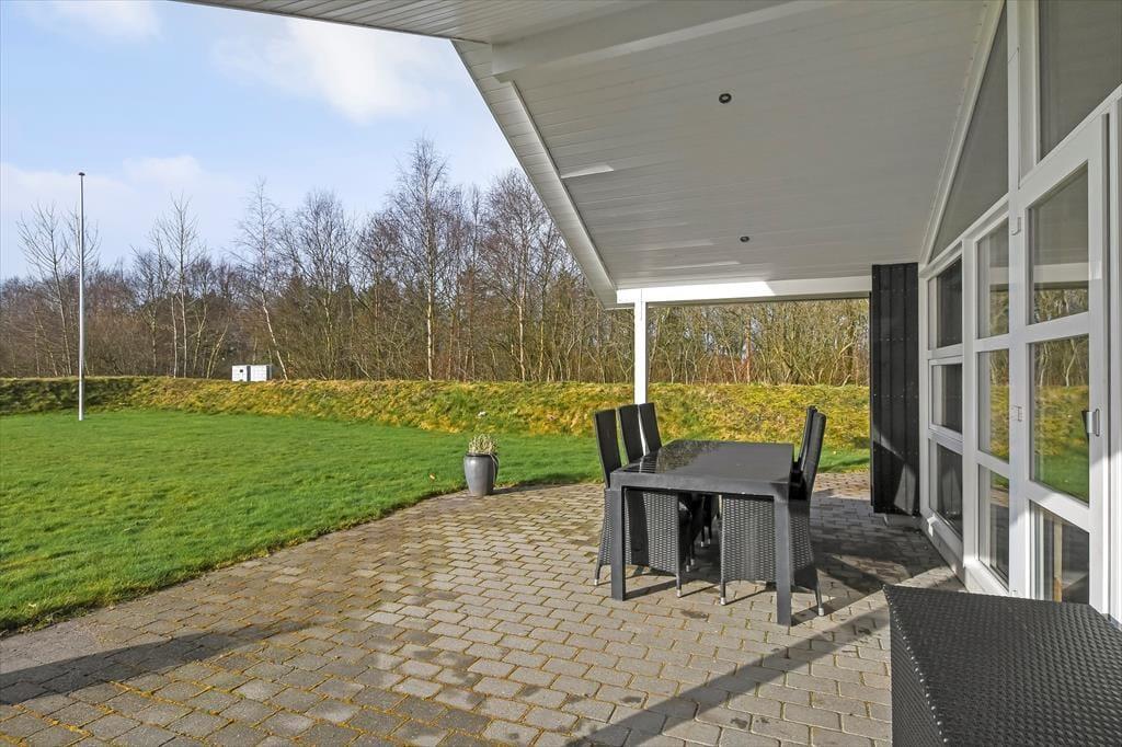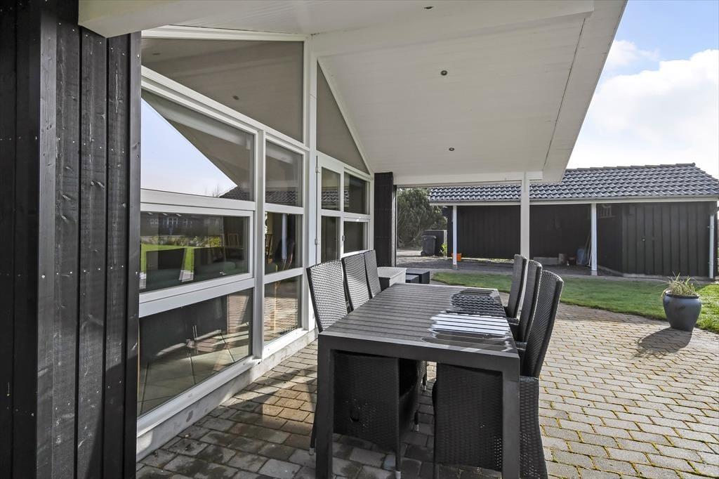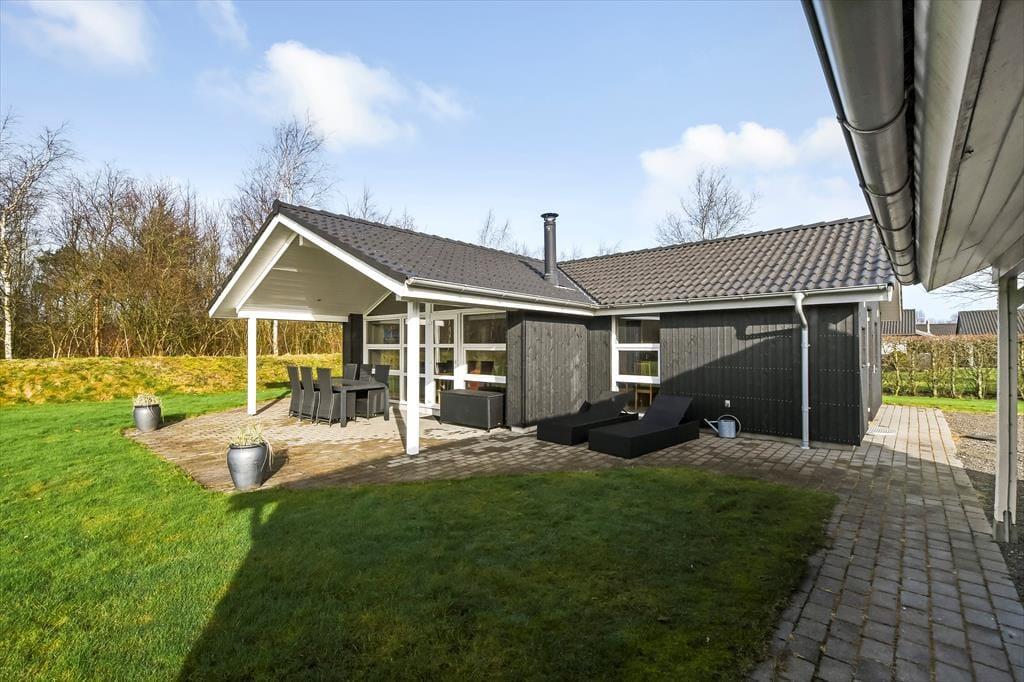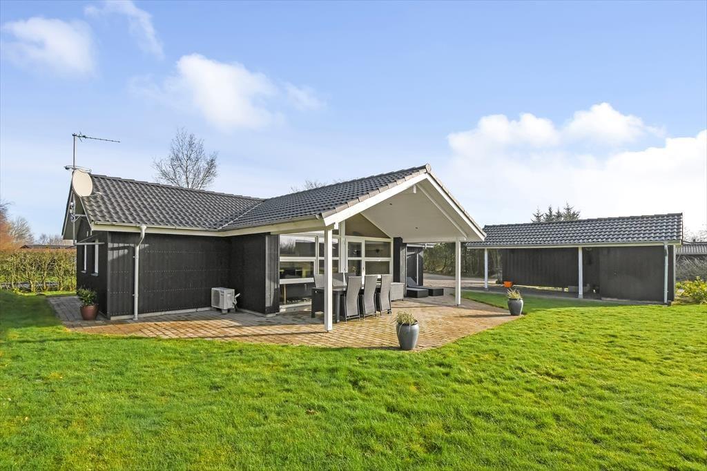 Terrassemiljøet byder på både åbne og overdækkede arealer, så du kan sætte dig lige der, hvor du lyster. Vil du slet ikke sidde stille, men hellere løbe og lege med familien, er der masser af plads på græsplænen, som skærmes af en lille vold ud mod vejen. Til de yngste børn er der gyngestativ, og både store og små kan glæde sig til, at det bliver aften, så I kan tænde grillen og gøre klar til et rigtigt festmåltid under åben himmel. Bilen kan enten holde i carporten eller på grusarealet ud mod den lukkede vej.