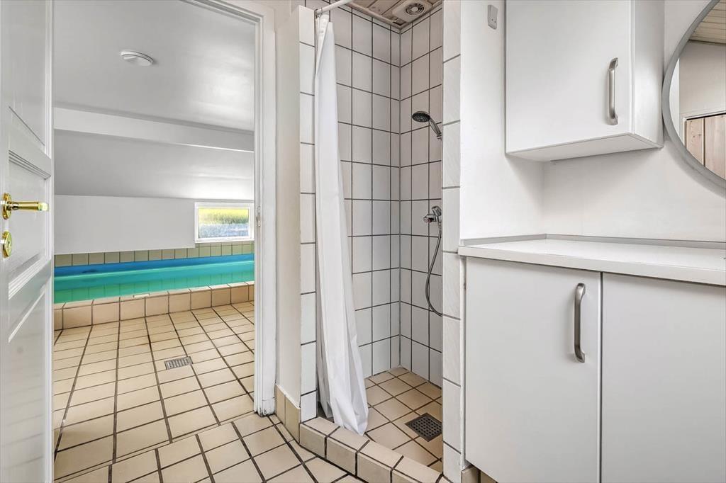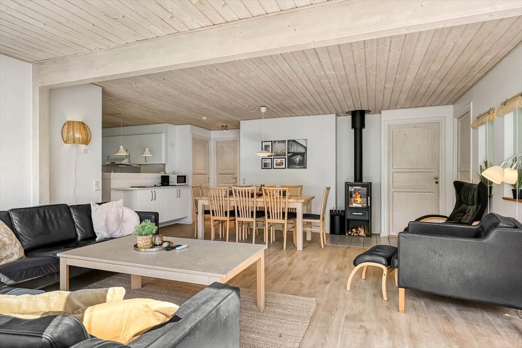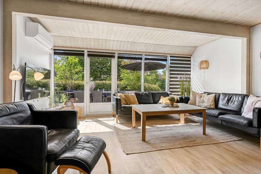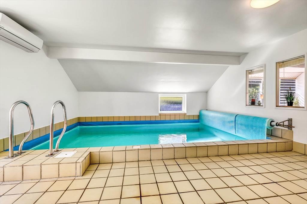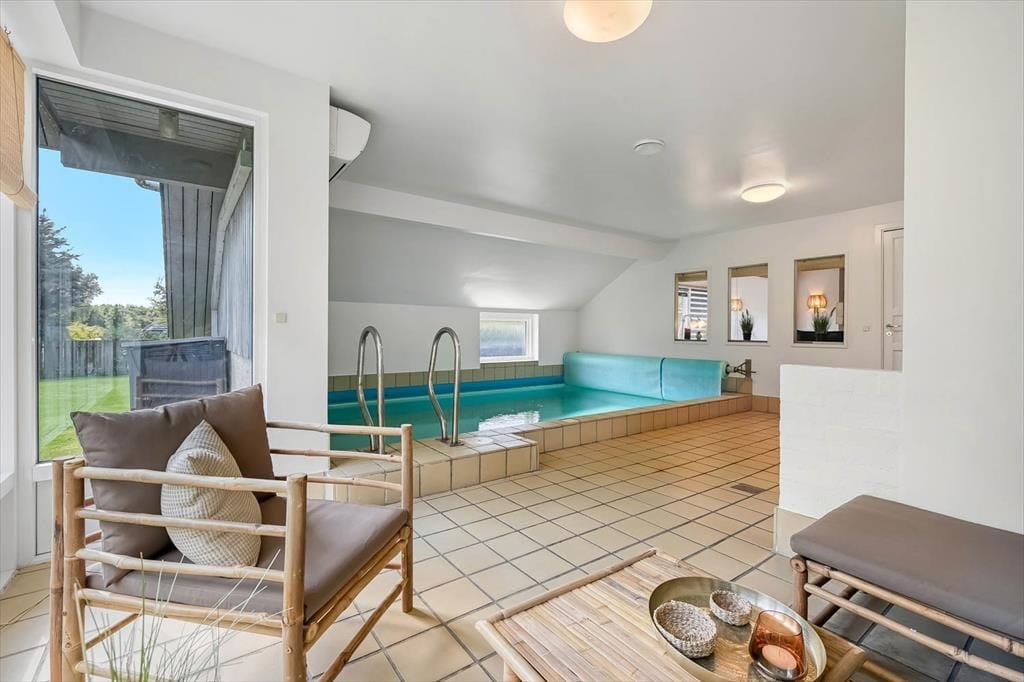 Husets hjerte er uden tvivl den store stue, der hænger sammen med køkkenet. Her har I udsigt til både haven og til poolrummet – og kan derfor bevare overblikket, efterhånden som dagen går i gang og husets gæster fordeler sig udenfor eller i poolen. I stuen finder I også husets spiseplads samt en sofagruppe, hvor I kan nyde en god bog eller en god film i fjernsynet. Husets fire soveværelser fordeler sig rundt om stuen og køkkenet, og her er der også masser af skabsplads. Et af husets helt store plusser er den 15 kvm store swimmingpool, her kan I plaske rundt og slappe af i saunaen.