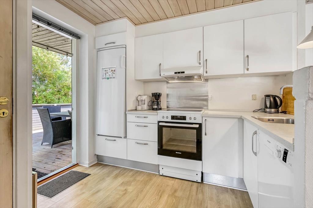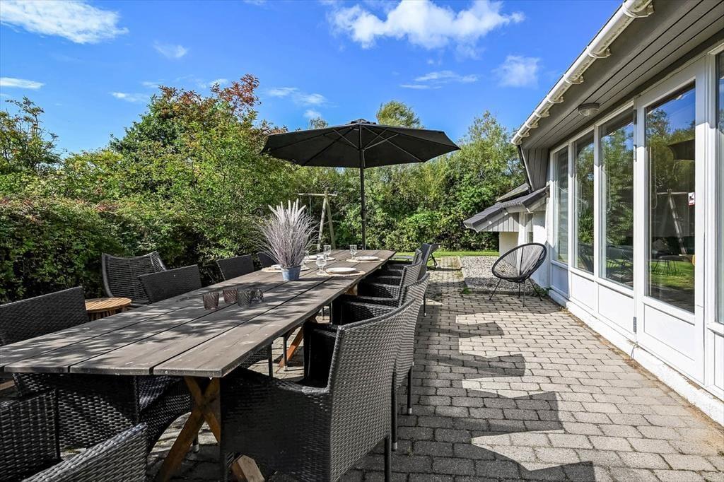 Huset har en dejlig træterrasse ved indgangen, der vender mod vest – det perfekt opholdspunkt, når I vil nyde aftensmaden eller kaffen under åben himmel, og samtidig nyde den smukke solnedgang. Husets anden terrasse ligger i forlængelse af stuen, og denne vender mod syd, så her har I masser af sol fra morgen til aften, og her er også en dejlig stor græsplæne, som gør det nemt for isæt husets mindste gæster at folde sig ud. Huset har derudover gode parkeringsforhold, og det er let at komme ind til huset gennem Bork Havn by.