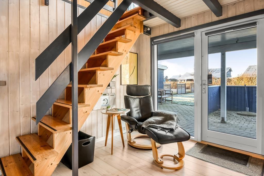 Lige fra det øjeblik, I træder ind i huset, mærker I husets varme og personlighed. Dette hus er ikke bare ”et i rækken”, men derimod et, der virkelig er kræset for gennem årene. Samlingspunktet i stueetagen er stuen, der hænger sammen med køkkenet. Her er alt det praktiske, I skal bruge for at lave mad og vaske tøj – men her er også masser af hygge, da huset har en dejlig brændeovn i midten af rummet, perfekt hvis I vil blive siddende efter maden og nyde et spil kort, eller I kan fortsætte direkte ud på den delvist overdækkede terrasse, hvor I selvfølgelig også kan nyde maden og hinandens selskab, når vejret tillader det. I stueetagen finder I også alle soveværelser, der hver har plads til to personer. Her er også husets badeværelse, samt en fin østvendt udestue og et redskabsrum med plads til alt det praktiske. På husets 1. sal er opholdsstuen indrettet med lækre møbler – og en fantastisk udsigt over fjorden. Denne kan selvfølgelig også nydes fra balkonen, og hele herligheden vender mod vest, så I kan nyde den berømte solnedgang over Vesterhavet, uden at skulle køre efter det.