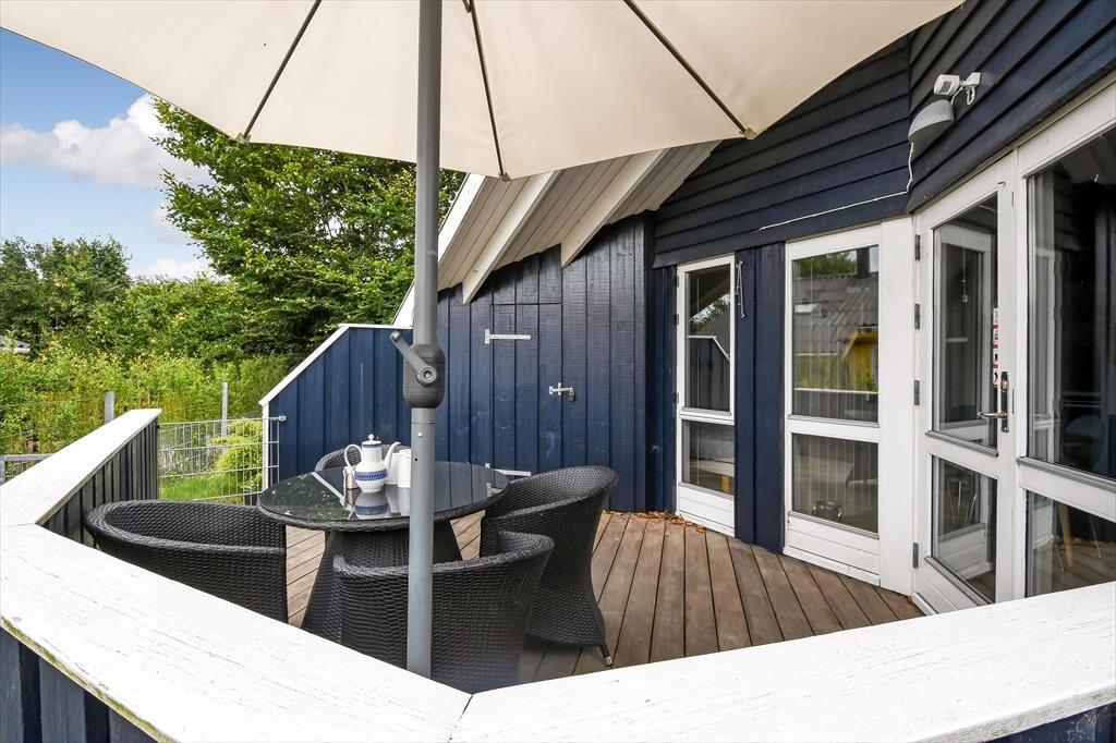 I forlængelse af stuen ligger en lukket terrasse, som med sin sydvendte orientering bliver kysset af solen en stor del af dagen. Den kan hurtigt blive dit foretrukne sted at sidde, når du vil nyde det gode vejr på tilbagelænet vis – og det er oplagt at dække havebordet op og tænde for grillen, så du kan fejre ferien med sommerlige måltider sammen med dine kære. På den anden side af huset finder du en ugeneret baghave, og her kan du også slå dig ned, hvis ikke det er tid til at tage ud for at udforske Bork Havn og omegn.
