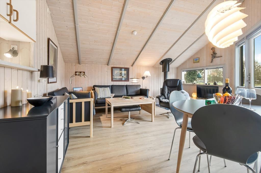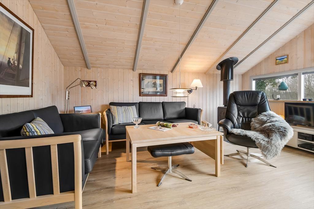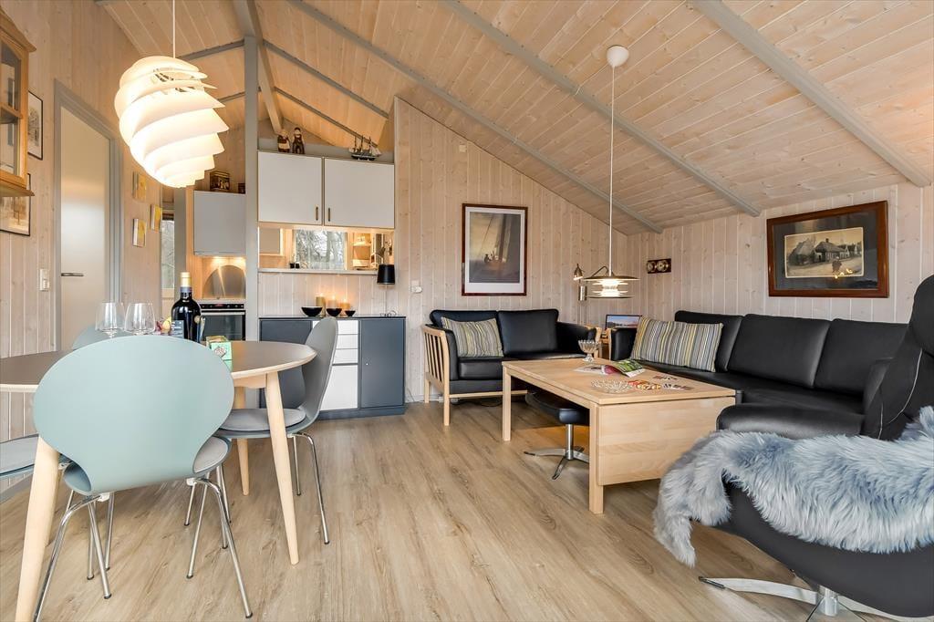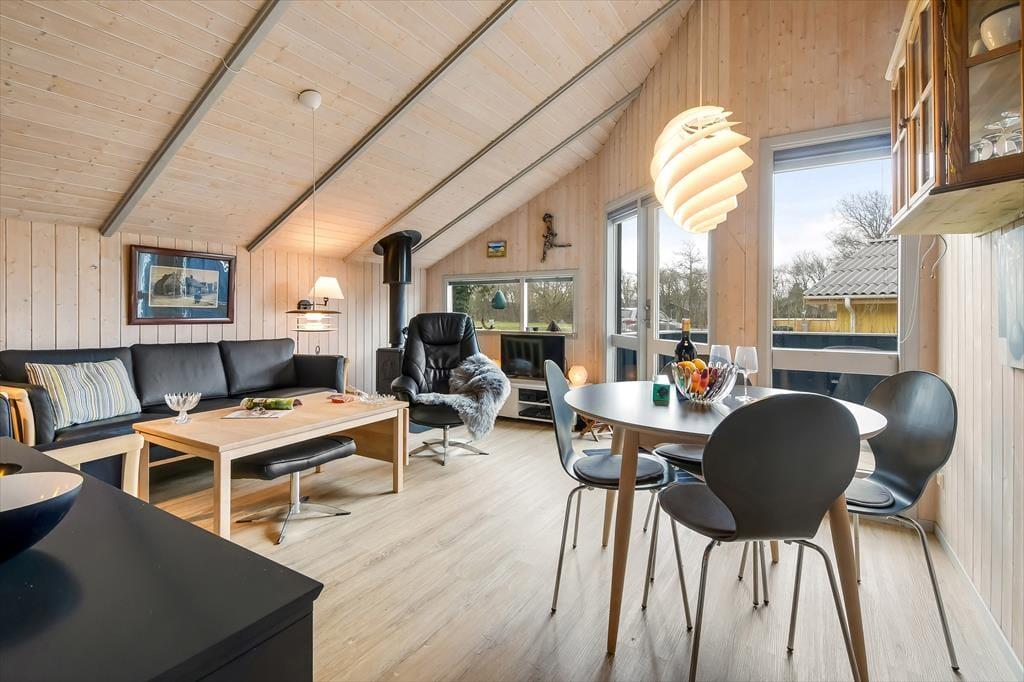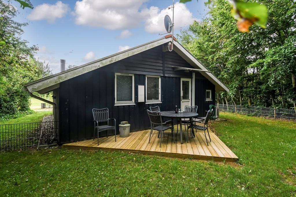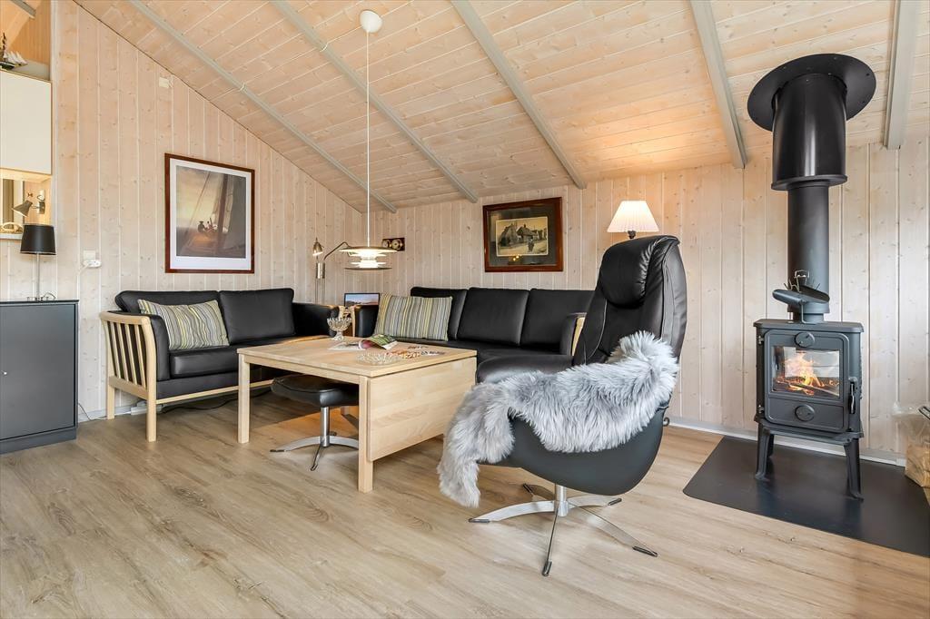 Du kan se frem til både indendørs hygge og udendørs afslapning, når sommerhusferien foregår på Bork Hytteby 5 i Bork Havn. Dette charmerende hus er nemlig udstyret med brændeovn og komfortable møbler i stuen, og ude venter en dejlig terrasse, der indbyder til at lade dagene foregå i helt roligt tempo.
