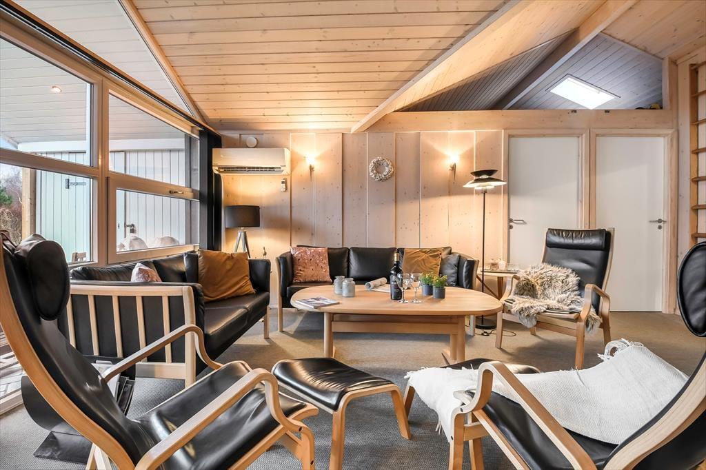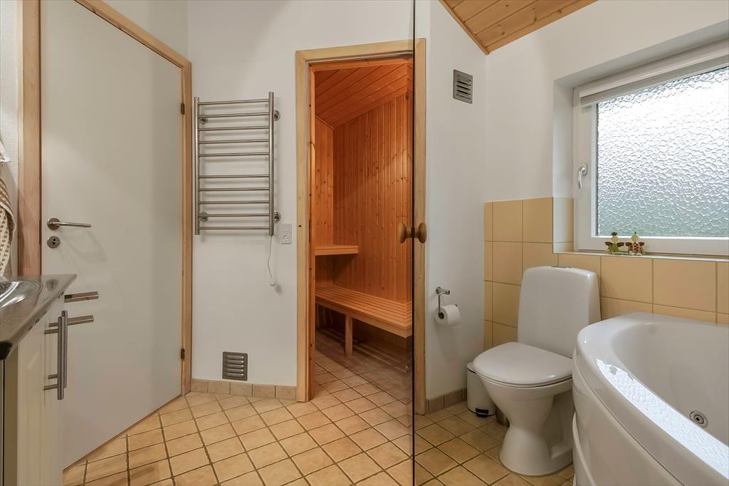 Feriehuset er stort og velindrettet, og her er der både plads til, at par, familier eller venner kan slappe af og nyde hinandens selskab, samtidig med, at alle kan trække sig tilbage og nyde den fred og ro, der er i dette feriehus. Husets hjerte er den store stue, der både hænger sammen med køkkenet og spisepladsen, og som også har direkte udgang til den store, sydvendte terrasse. Det store vinduesparti i stuen sikrer jer en masse naturligt lys, når I skal nyde tiden på terrassen eller sammen i sofaen. Huset byder også på tre gode soveværelser med skabsplads, en hems og et dejligt stort badeværelse, som har både indendørs spa og sauna – den perfekt kombination, når man skal koble af og nyde en tiltrængt sommerhusferie.