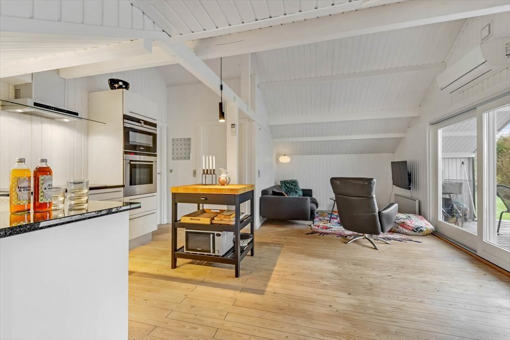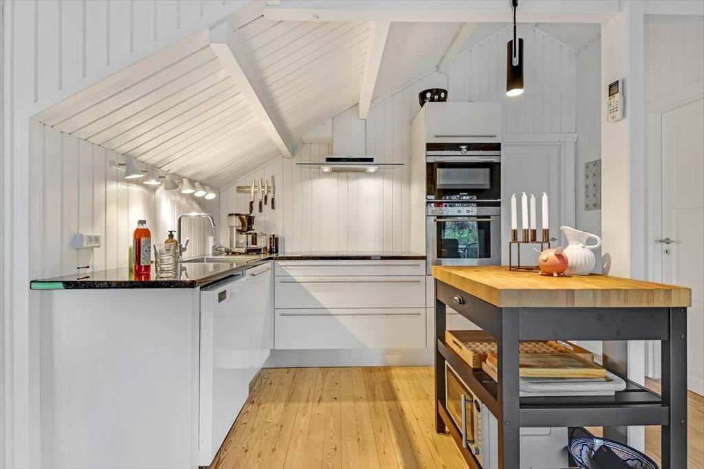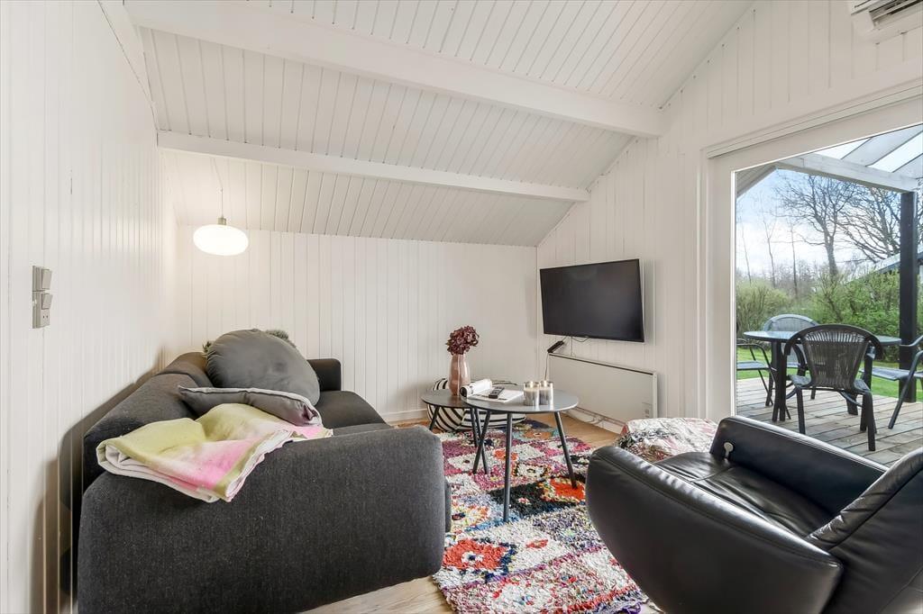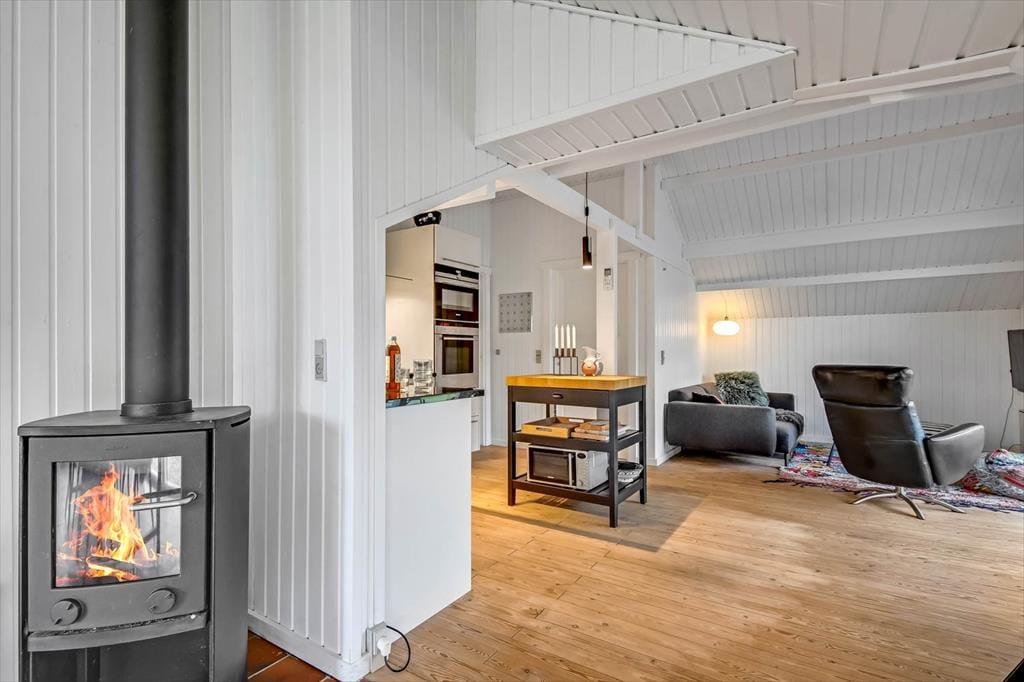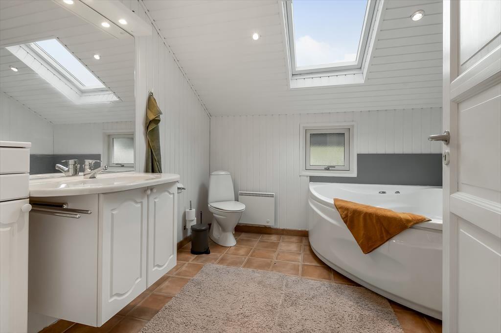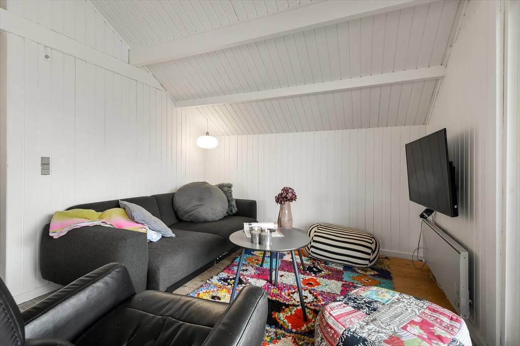 Badeværelsets spabad er kun én af detaljerne, der sørger for, at du kan sænke skuldrene og føle dig godt tilpas inden døre. Stuens sofahjørne inviterer til tilbagelænede hyggestunder med en spændende bog eller en romantisk film, og spisebordet er et dejligt samlingspunkt, uanset om det er tid til at spise, eller om I vil finde terningerne frem og gøre klar til det afgørende spil yatzy. Fra det åbne køkken kan du tage del i det sociale samvær, også selvom det er dig, der har madtjansen. Soveværelser er der tre af, og især når huset er fuldt, er det rart, at der er et gæstetoilet foruden et badeværelse i huset.