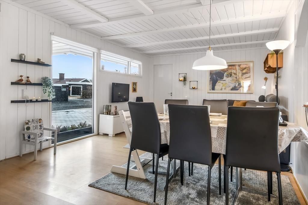 Dette dejlige sommerhus er fuld af skønne opholdspladser og hyggekroge. Så uanset om du er i humør til at slappe af nær brændeovnen, sidde med udsigt til den grønne have eller læne dig tilbage i et spabad eller en sauna, kan det lade sig gøre her på Husfold 8 i Bork Havn.