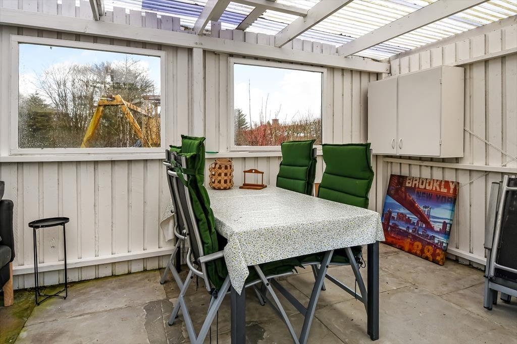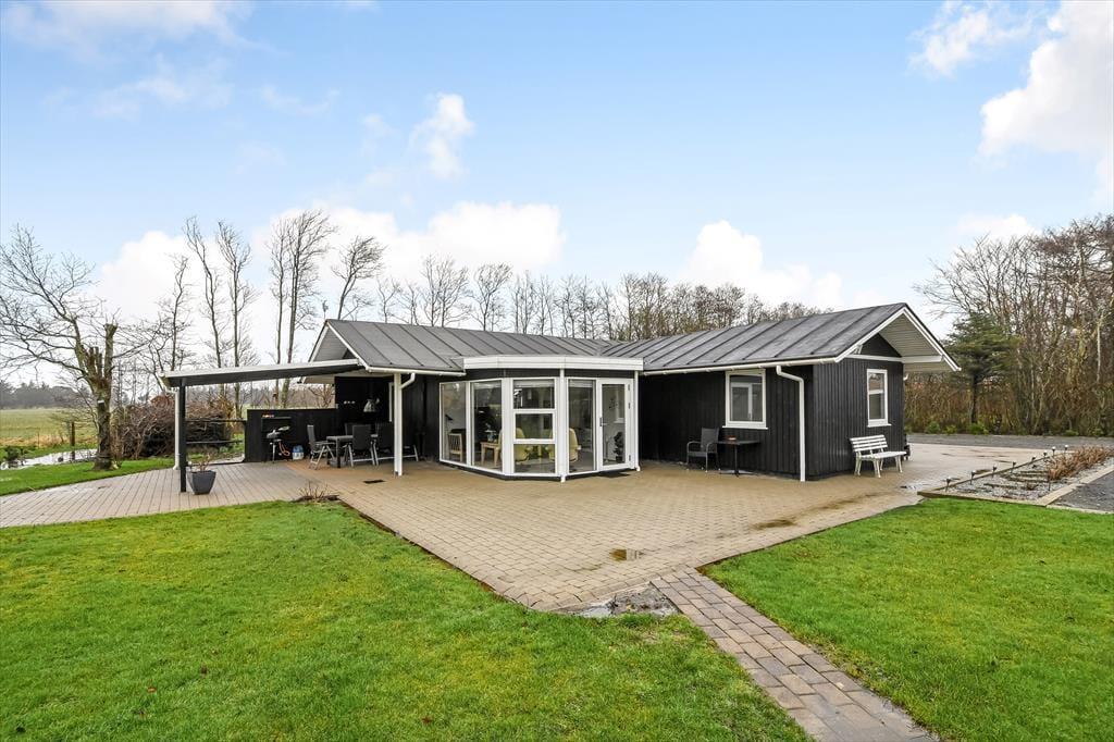 Også ude i det fri er der mange gode opholdspladser at vælge imellem, for rundt om huset venter der flere skønne terrasser. Det er dermed helt op til dig, om du vil sidde under overdækningen eller finde den bedste solplet – og der er selvfølgelig også rig mulighed for at lege og spille bold på græsplænen, hvis du hellere vil tumle med hunden eller hygge dig med børnene. Den lukkede grund er med sine 1533 m2 dejligt stor, og så ligger den ganske ugeneret for enden af en blind vej og som nabo til åbne marker.