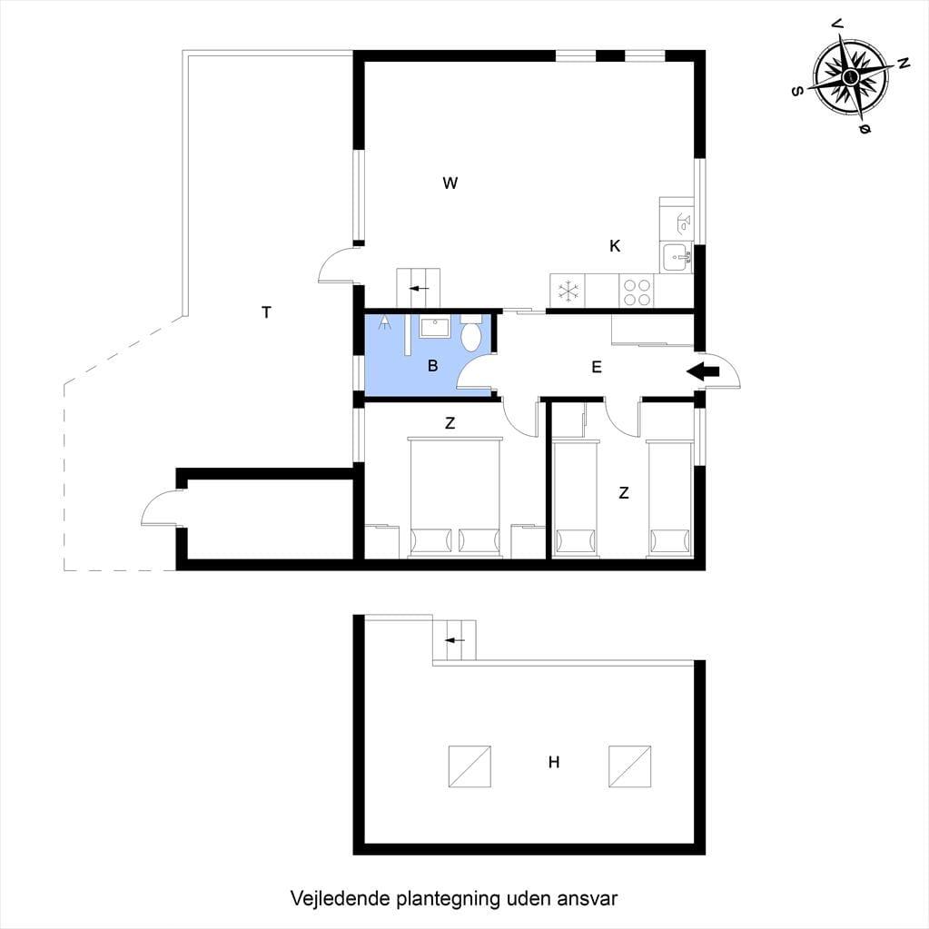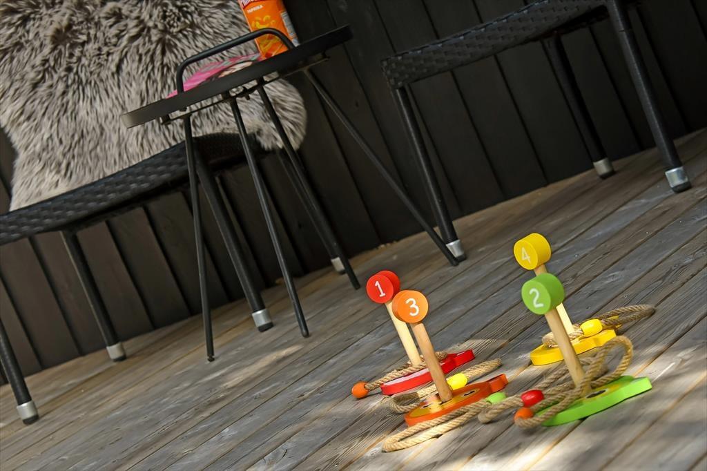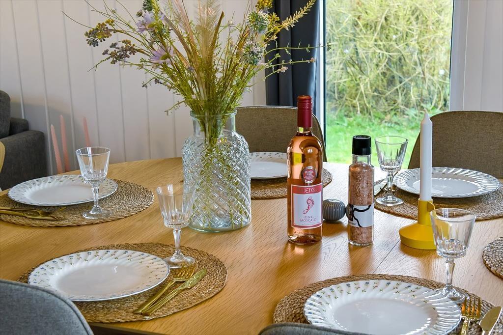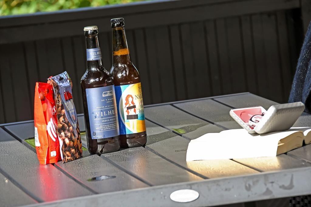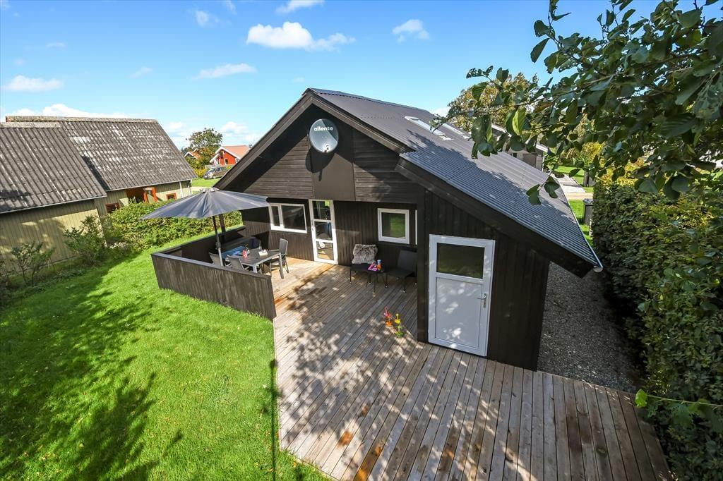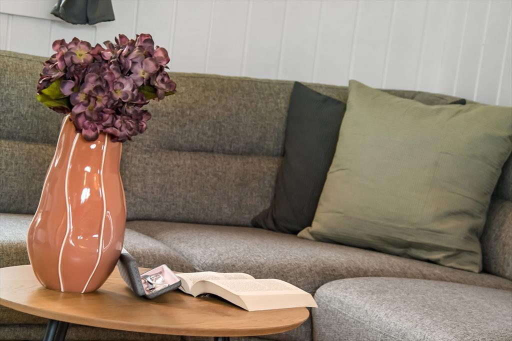 Ud mod den lille lukkede vej er der et flisebelagt terrasseområde og et græsareal, hvor bilen kan holde eller børnene lege. Men når du og familien vil slappe af, er det nok mere sandsynligt, at I søger om i den sydvendte baghave. Her venter der en stor træterrasse, der indbyder til solbadning i liggestolene, siestaer under parasollen og lækre måltider tilberedt på grillen. På en stille sommeraften er det skønt at sidde og nyde de rolige omgivelser helt frem til sengetid – når I altså ikke er ude for at lege på hyttebyens grønne fællesarealer eller hygge jer på havnen i Bork Havn.
