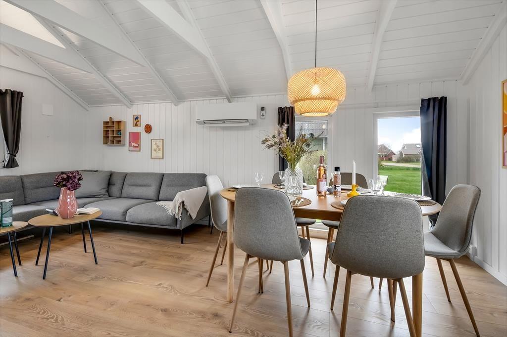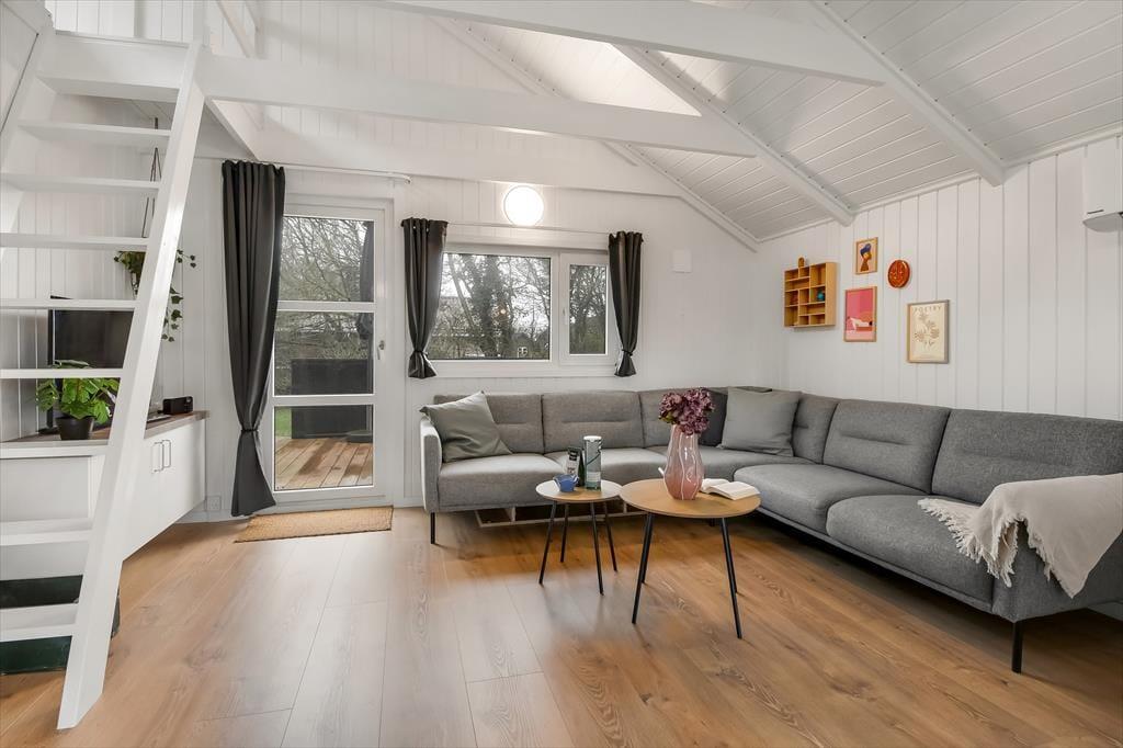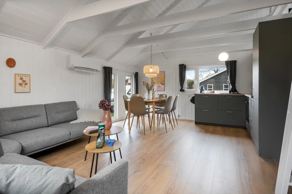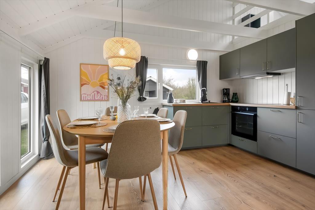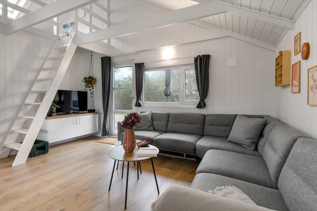 Sommerhusets 50 m2 er virkelig fornuftigt udnyttet, og med to gode soveværelser kan I fint være fire personer inden døre – og fra stuen har I sågar også adgang til en hems, hvis en af jer foretrækker at sove heroppe. Husets rum fremstår lyse og lækre efter den omfattende renovering i 2024, og alt, lige fra badeværelsets rainshower til stuens komfortable hjørnesofa er med til at gøre feriedagene ekstra behagelige. Hvis det er din tur til at lave mad, har du gode arbejdsforhold i det åbne køkken, og med mindre I sætter jer ud på terrassen for at spise, er det herligt at samles omkring spisebordet til en veltilberedt middag.