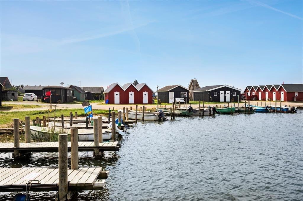 Fra sommerhuset er der bare 200 meter hen til den nærmeste legeplads, og cirka samme afstand har du til Bork Hyttebys charmerende jollehavn, der ligger ud mod Fahl Å. Det familievenlige friluftsmuseum Bork Vikingehavn ligger også i kort gåafstand, og bare et par kilometer væk finder du Bork Havns lavvandede surfstrand – her kan både begyndere og eksperter boltre sig på vandet, og hvis du vil have et introkursus i kitesurfing eller på udflugt på et SUP-board, kan det også lade sig gøre. Havnemiljøet i Bork Havn er altid hyggeligt at besøge, og hvis du vil tilbringe eftermiddagen på Nymindegab Strand eller opleve fiskerbyen Hvide Sande, kommer du nemt frem.